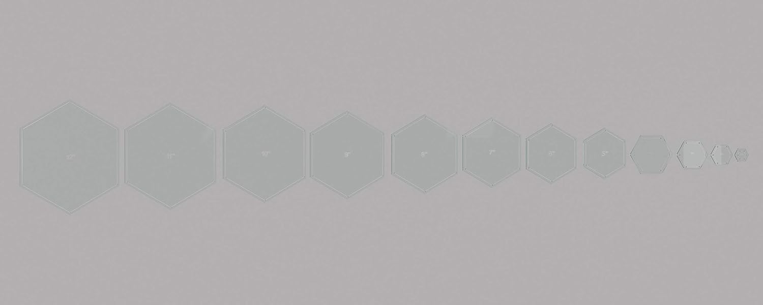 Hexagon Quilting Template Set - 1", 2", 3", 4", 5", 6", 7", 8", 9", 10", 11", 12" with 1/4" Seam Allowance - Durable Acrylic Templates for Quilting, Patchwork, Crafting, & Sewing Projects