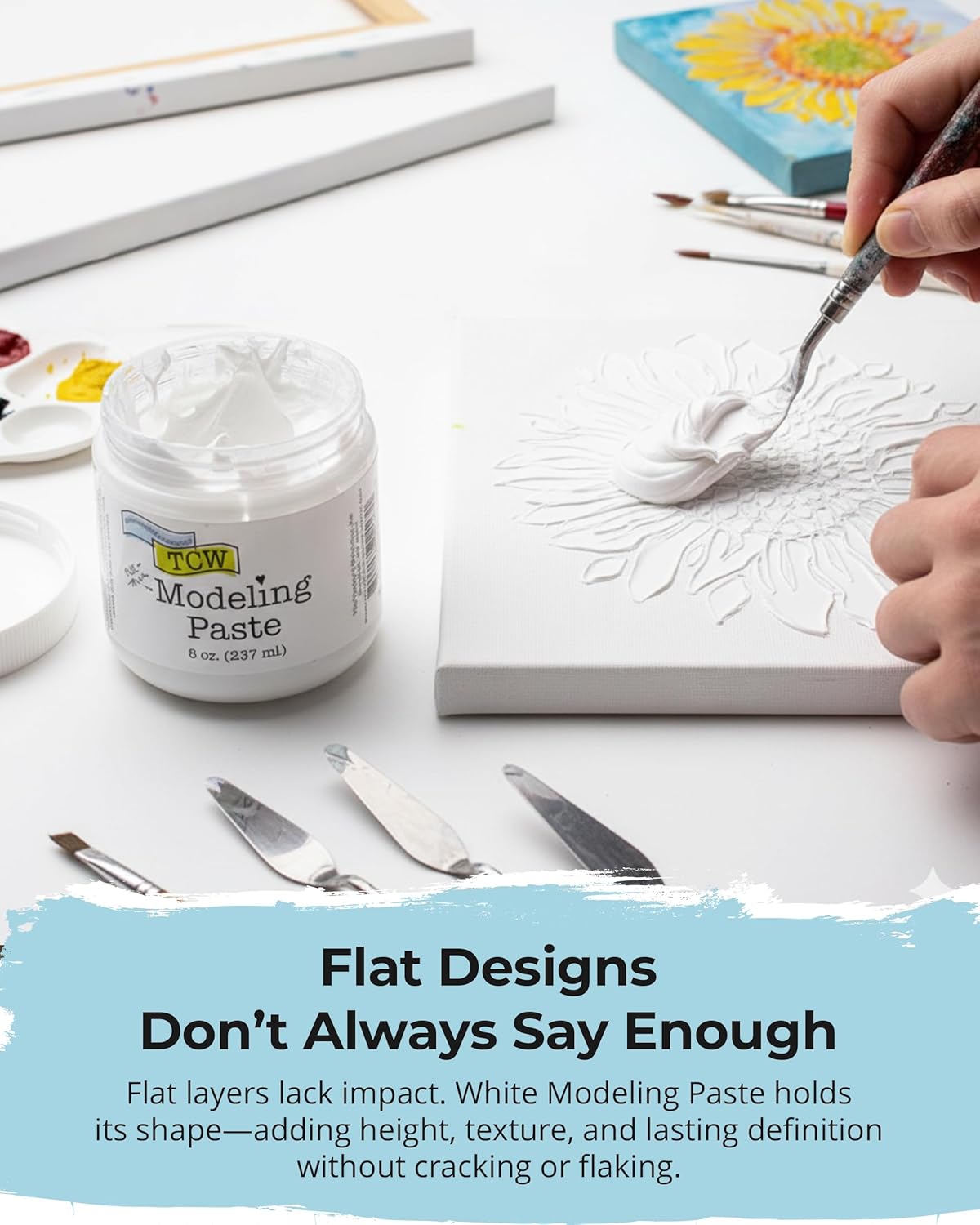 - BRING BOLD TEXTURE TO LIFE - Add raised texture to mixed media, DIY cards, canvas art, and more with this opaque modeling paste. Thick, firm paste with smooth texture builds structure, height, and volume.