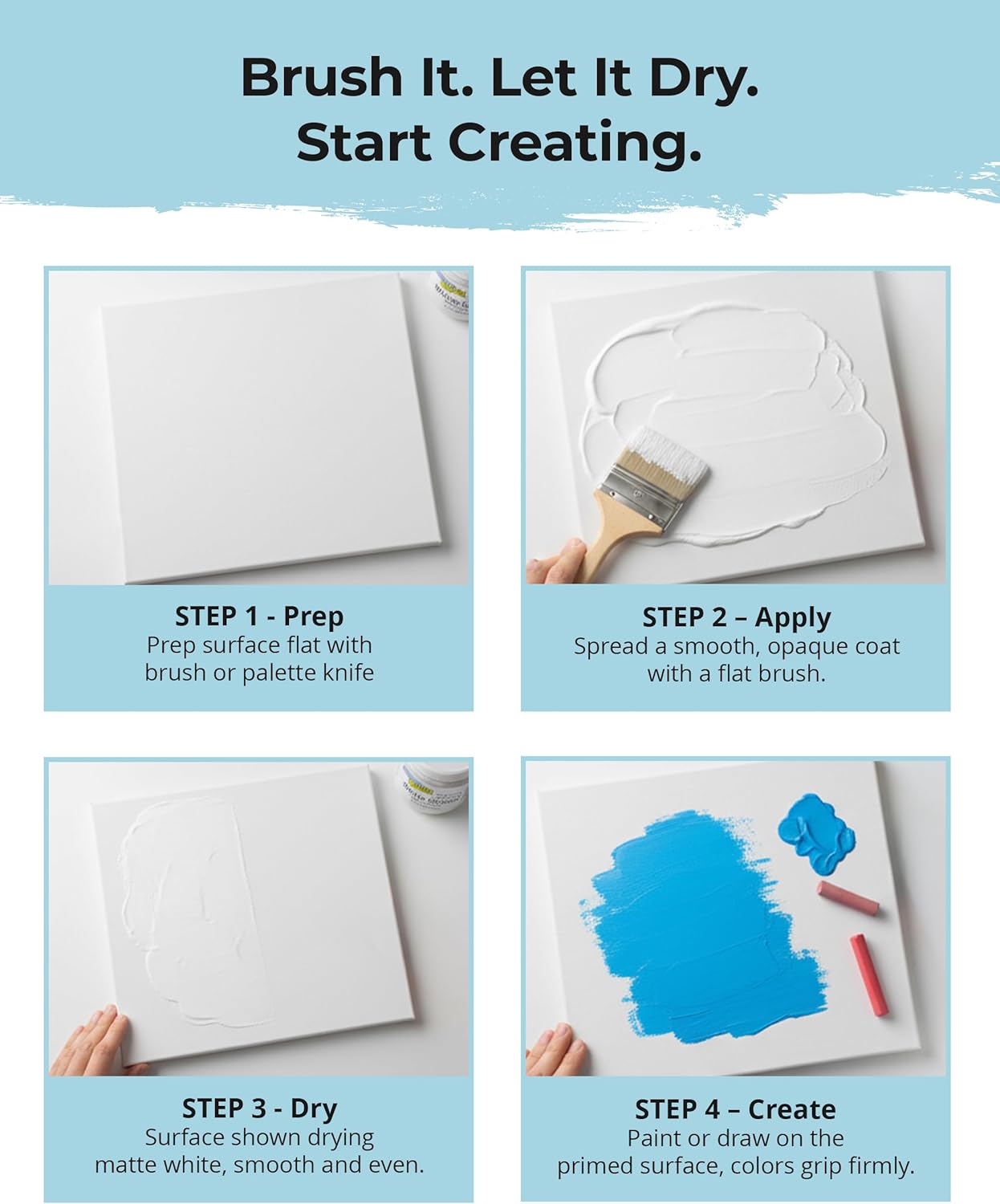 - BRIGHTEN YOUR BASE, BOOST YOUR COLOR - Creates a bright white surface that primes canvas and more for acrylic paint. Enhances vibrancy, improves coverage, and helps control paint absorption.