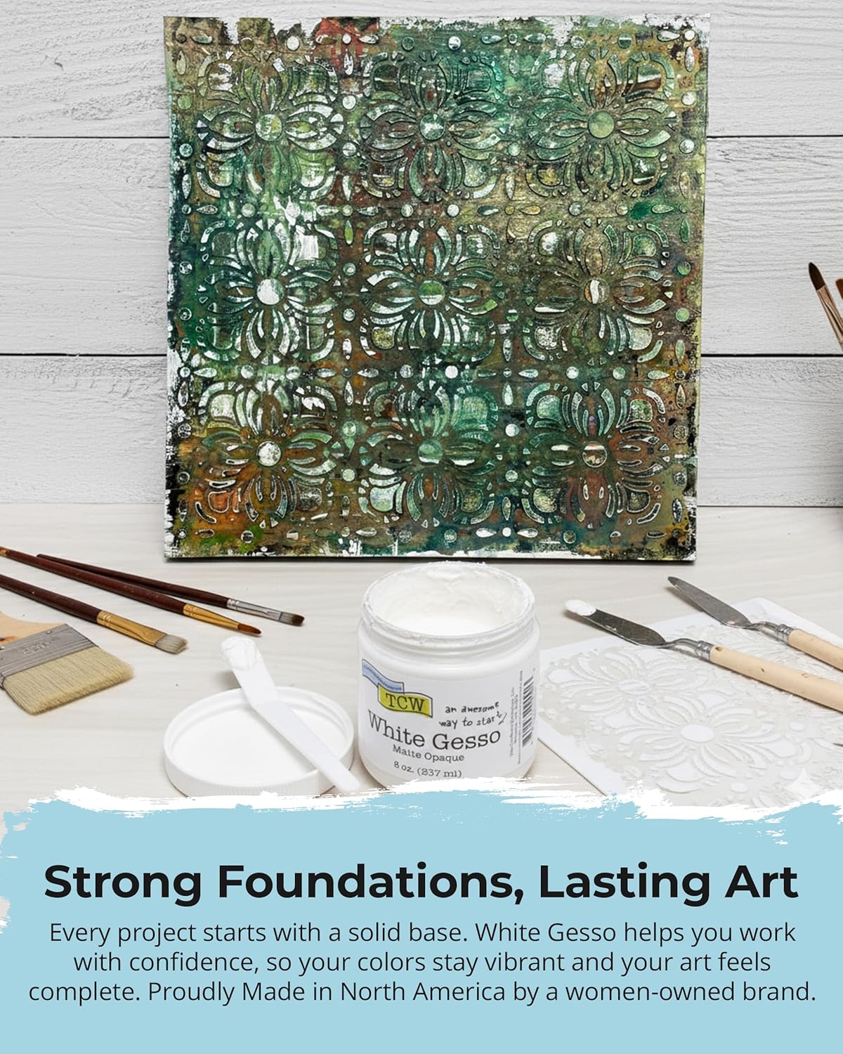The Crafter's Workshop White Gesso Primer for Acrylic Painting -Boutique Quality, 8 oz Jar
