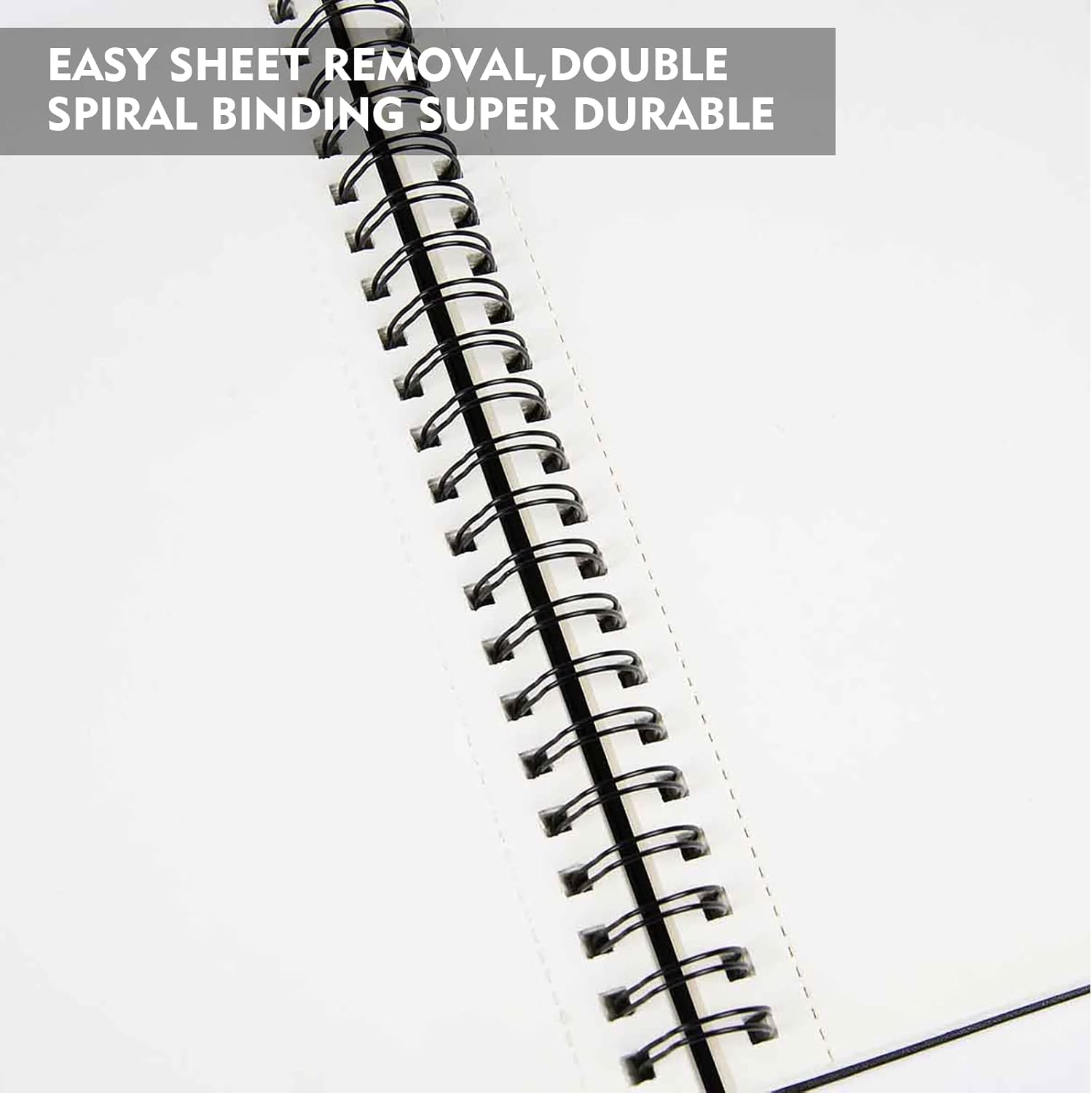 - Spiral Bound Sketch Pad: The spiral provides better access easily flip the pages over to the backs,,and sketch without removing pages,allow you to open your sketch book flat ach page has a perforated edging,Easy for you to separate paperand it will keep these papers nice and secure at all times