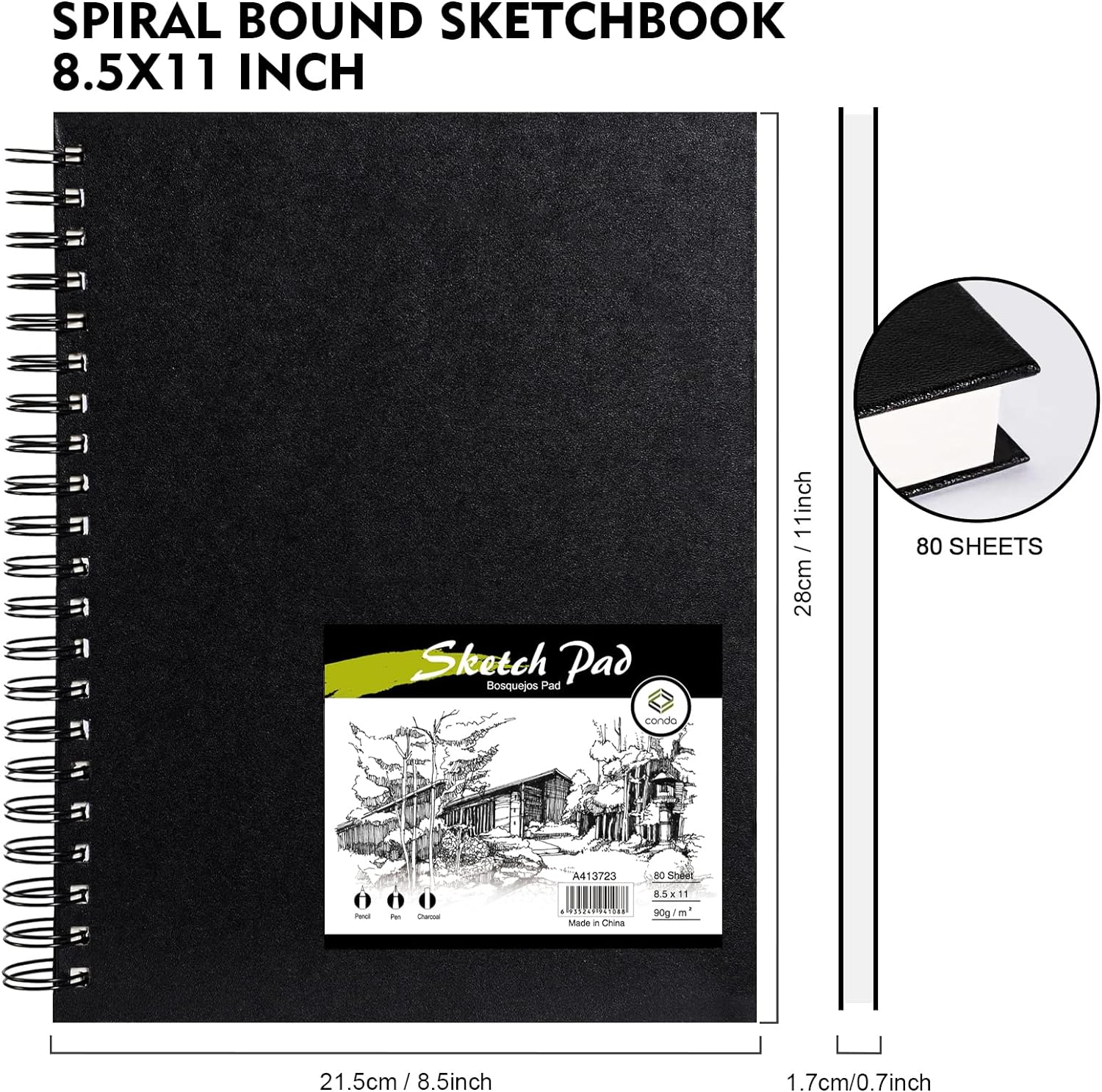 Conda 8.5"x11" Hardbound Sketch Book, Double-Sided Hardcover Sketchbook, Spiral Sketch Pad, Durable Acid Free Drawing Art Paper for Adults
