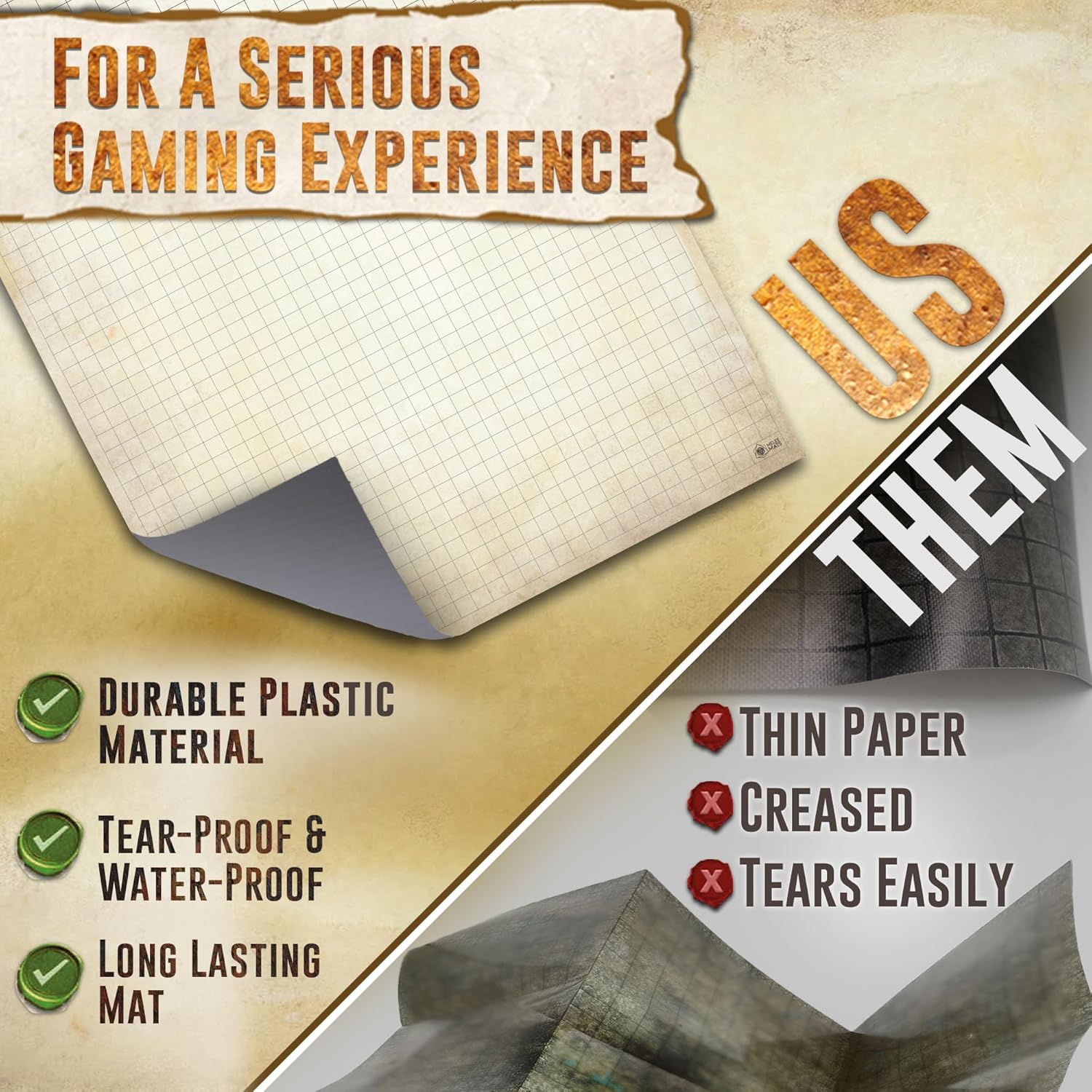 - Superior Quality and Durability: Experience a flawless battleboard with our anti-slide, stain-resistant mats, designed for longevity. Our set stands out with high-quality laminate materials that prevent ghosting and staining, ensuring vibrant gameplay and easy cleanup. Ready for any adventure, our battleboard keep your focus on the game, not on the mess.