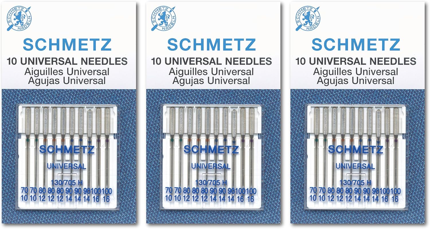 SCHMETZ Universal Sewing Machine Needles, Three 10-Pack Assortment, 30 Needles, 70/10, 80/12, 90/14, 100/16