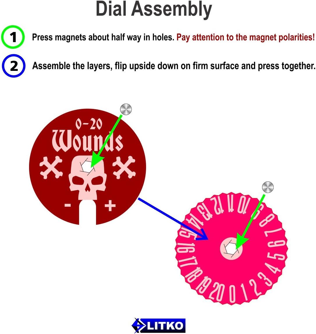 LITKO Wound Dials Wound Dials | Health Tracker | Life Counter | Tabletop Games | Collectible Card Games | Living Card Games | Role Playing Games | LCG | RPG | Numbered 0-20 | Magnetic