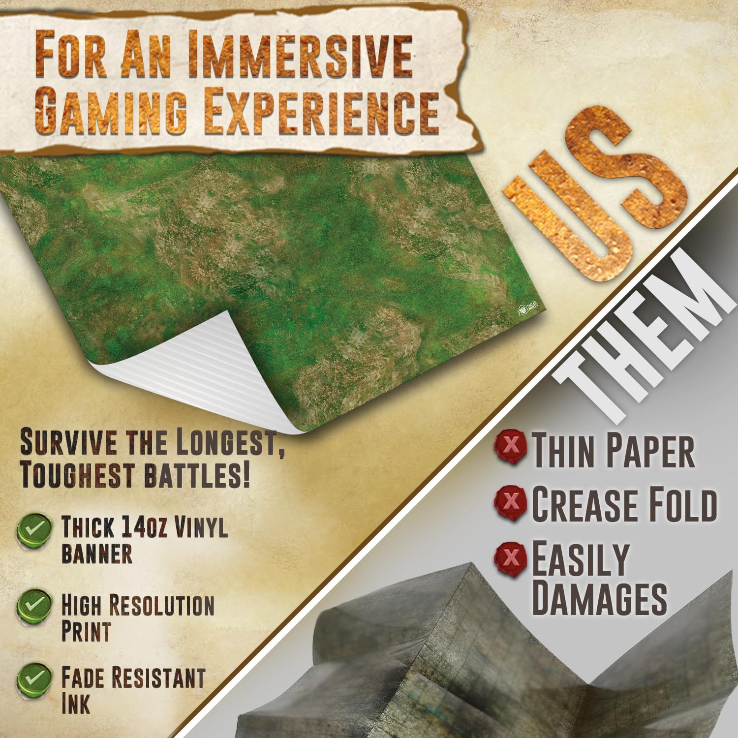 Battle Game Mat for DND - [48" x 72"] Wargaming Tabletop Map - Gaming Board for Warhammer 40k, Dungeons and Dragons, Wargame RPG - Vinyl Gaming Grass Terrain