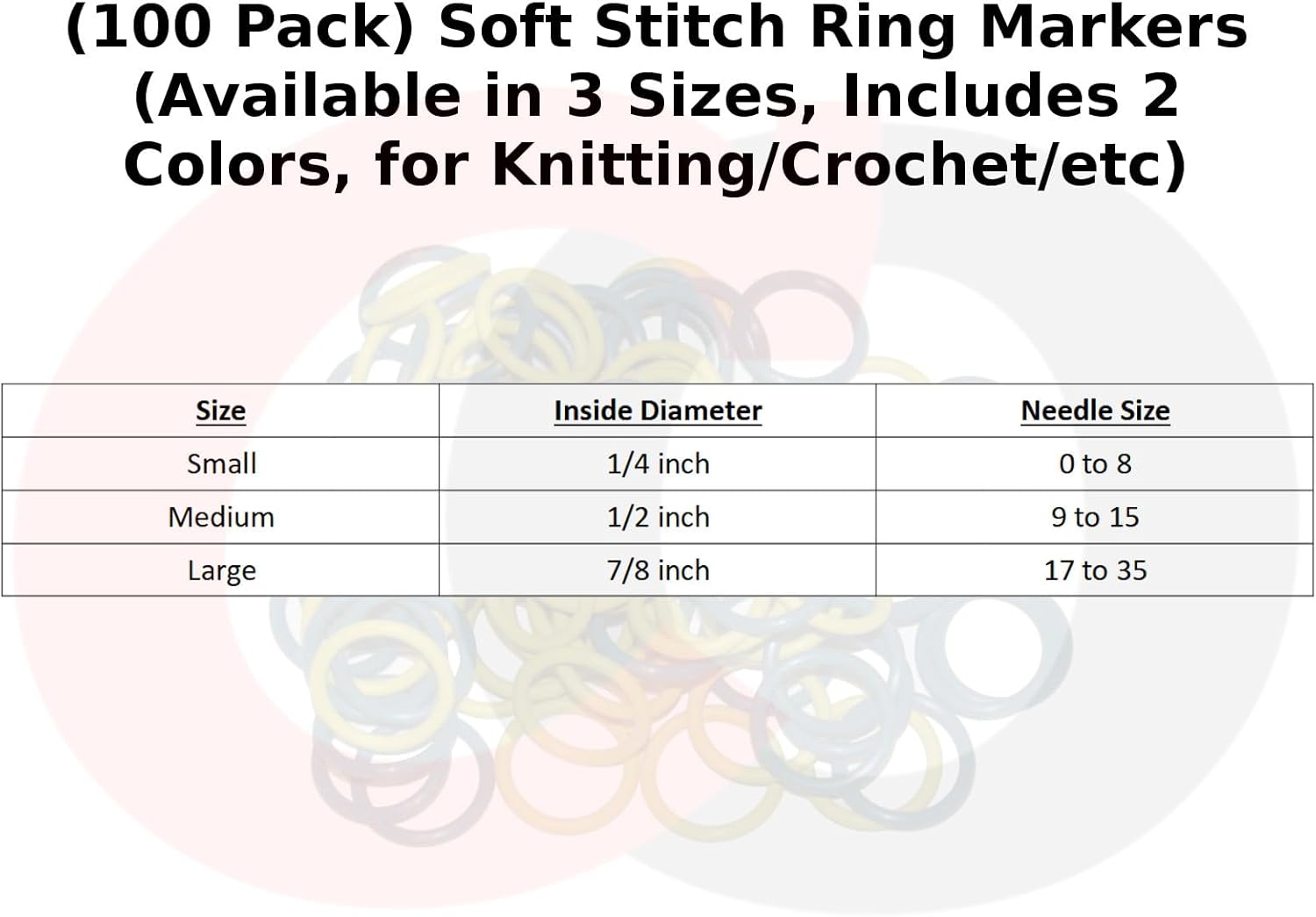 (100 Pack) Soft Stitch Ring Markers, Blue & Yellow (Medium Size for Needle Sizes 9-15, Includes 2 Colors, for Knitting/Crochet/etc)