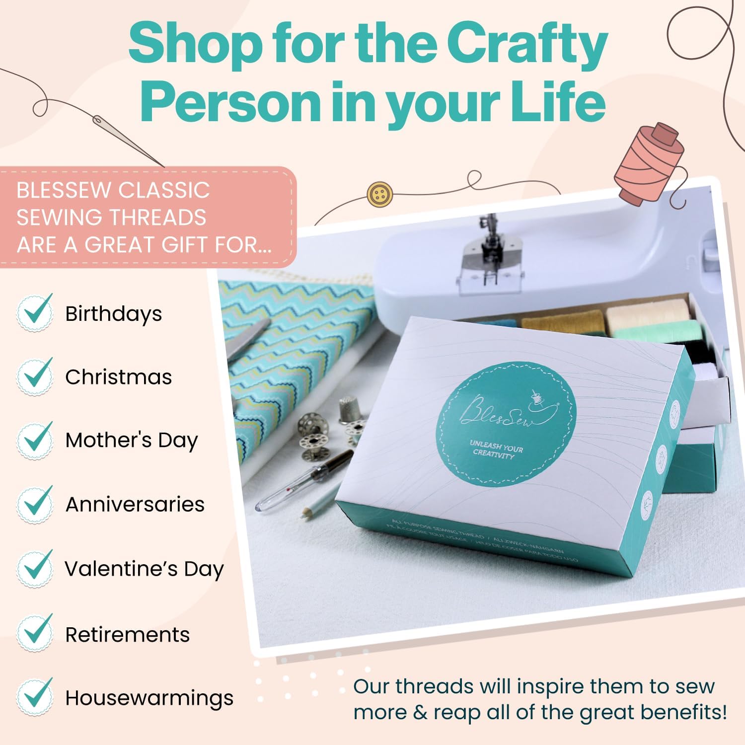 - Bring your Creativity to Life—Feed your curiosity and explore with a versatile all purpose thread for sewing machine that delivers flawless performance—BlesSew sewing thread assortment is a premium thread for multiple tasks in hand sewing, crafts, hand quilting, and more
