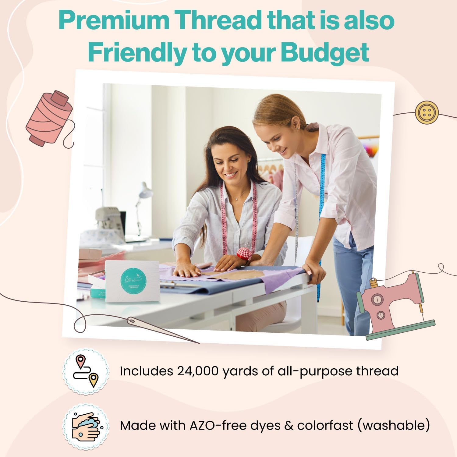 Sewing Thread-24 Spools of Polyester Thread for Sewing Machine for Beginners, Hand Stitching & Quilting-1000 yds Each in 22 Colors+Bonus Black & White