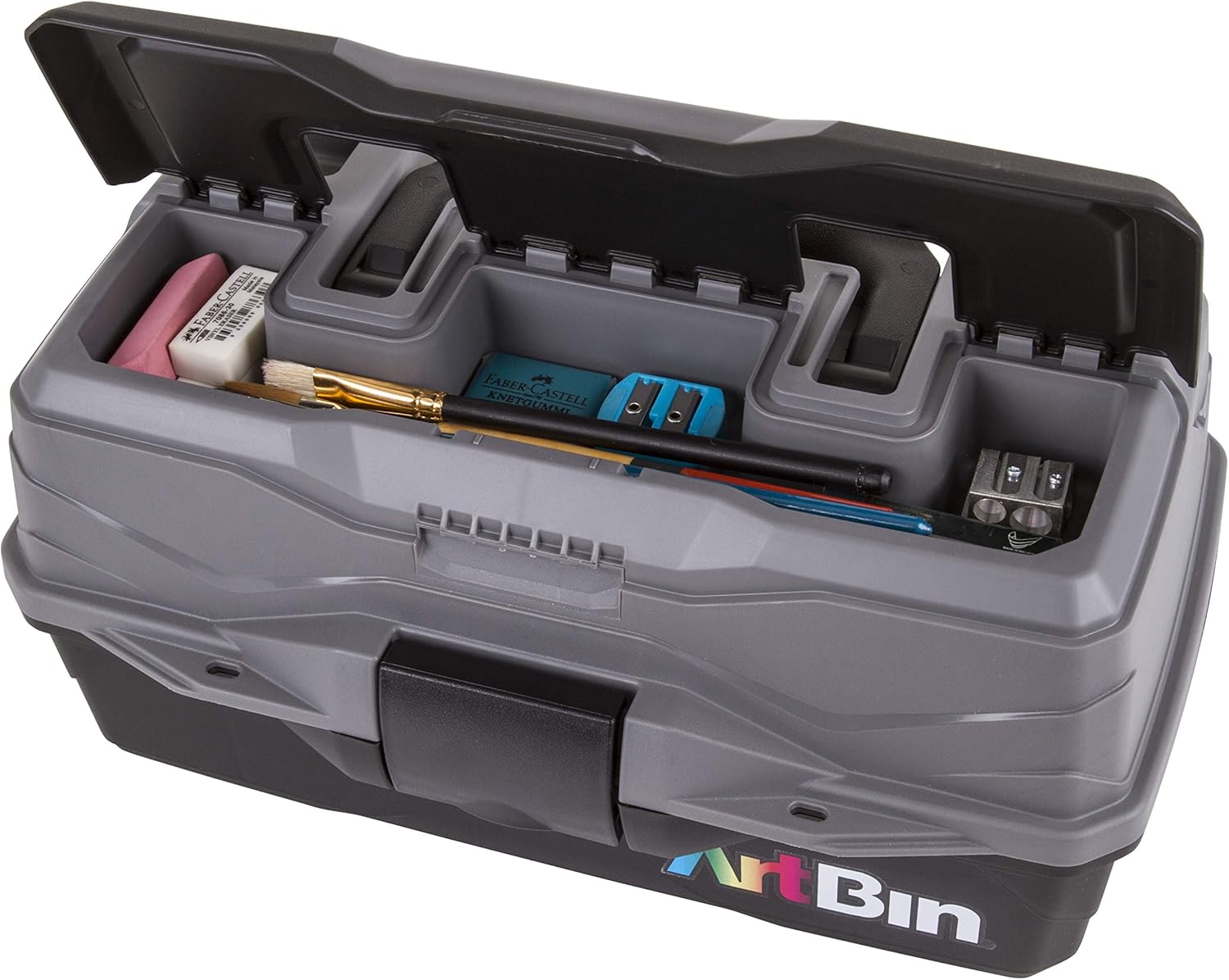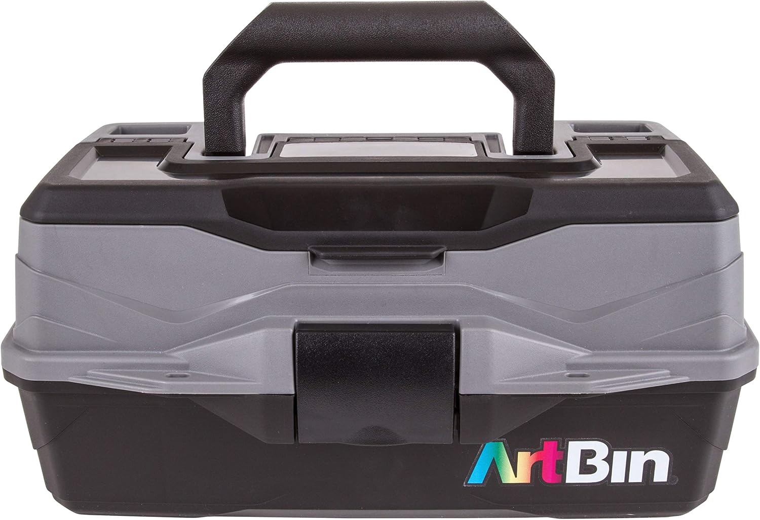 ArtBin 6891AG 1-Tray Art Supply Box, Portable Art & Craft Organizer with Lift-Up Tray, [1] Plastic Storage Case, Gray/Black