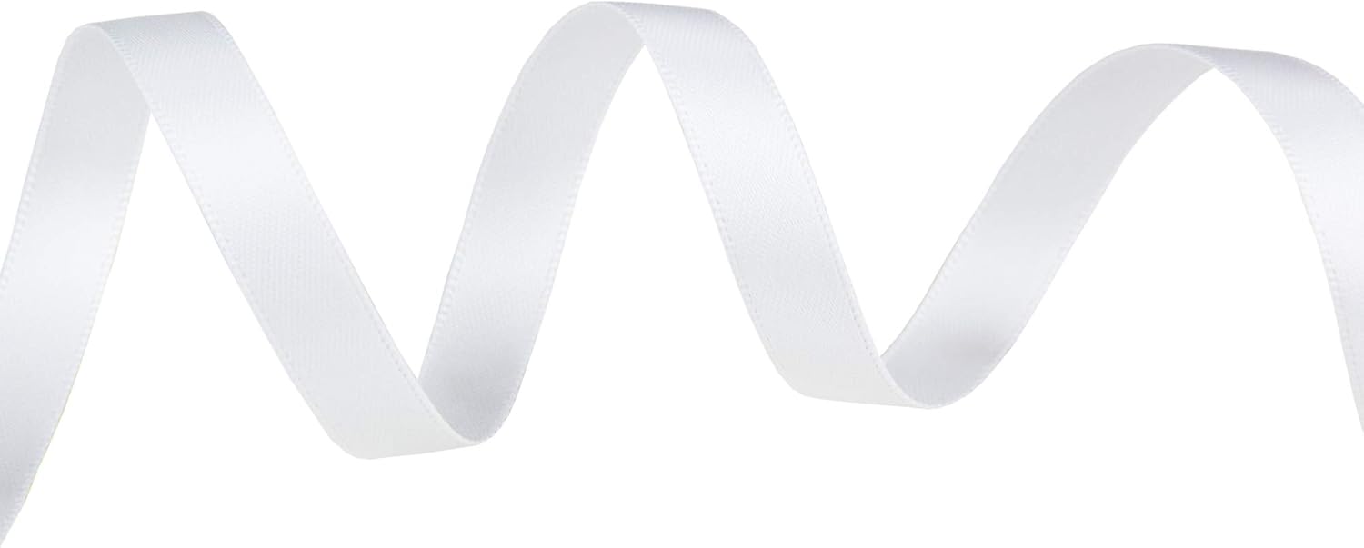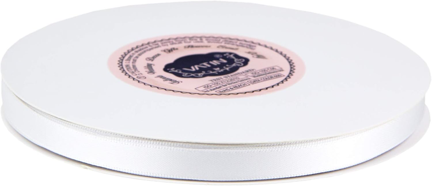 VATIN 3/8 inches Double Faced White Polyester Satin Ribbon - 50 Yards for Gift Wrapping Ornaments Party Favor Braids Baby Shower Decoration Floral Arrangement Craft Supplies