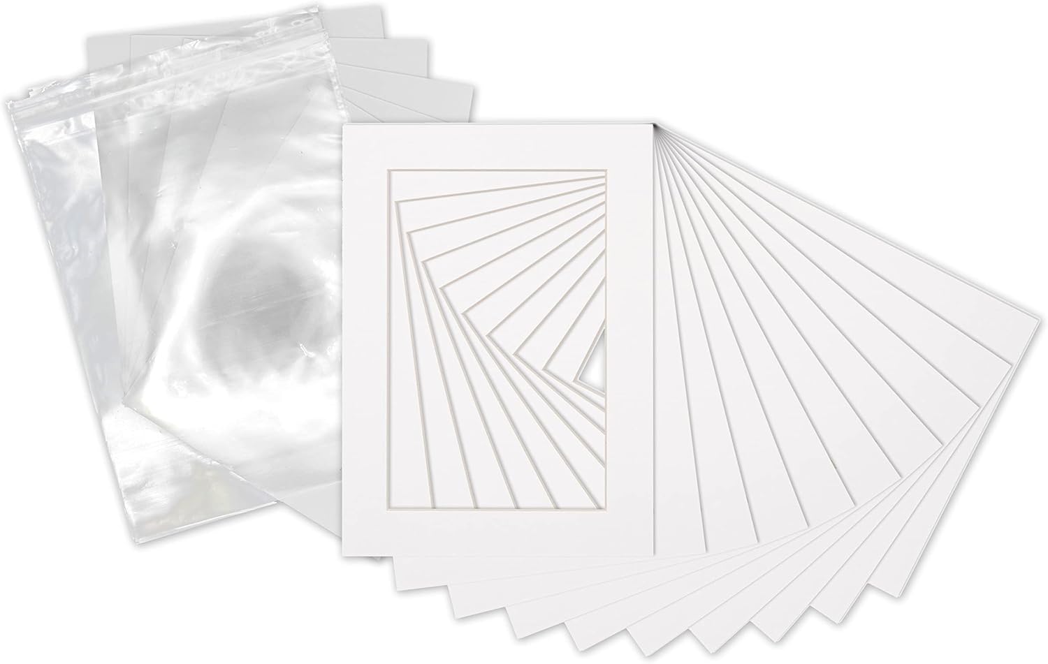 5.5x8.5 Mat for 8.5x11 Frame - Precut Mat Board Acid-Free Show Kit with Backing Board, and Clear Bags White 5.5x8.5 Photo Matte Made to Fit a 8.5x11 Picture Frame Matboard for Framing, Pack of 10 Mats