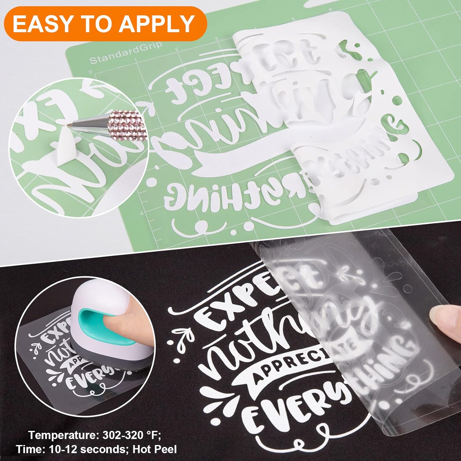 - ✂️EASY TO APPLY: Just use craft cutter and a home iron to get the job done. Apply for approximately 10-12 seconds at 302-320 °F (150-160 °C) and about 10 LBS of pressure. Be sure to cold peel.