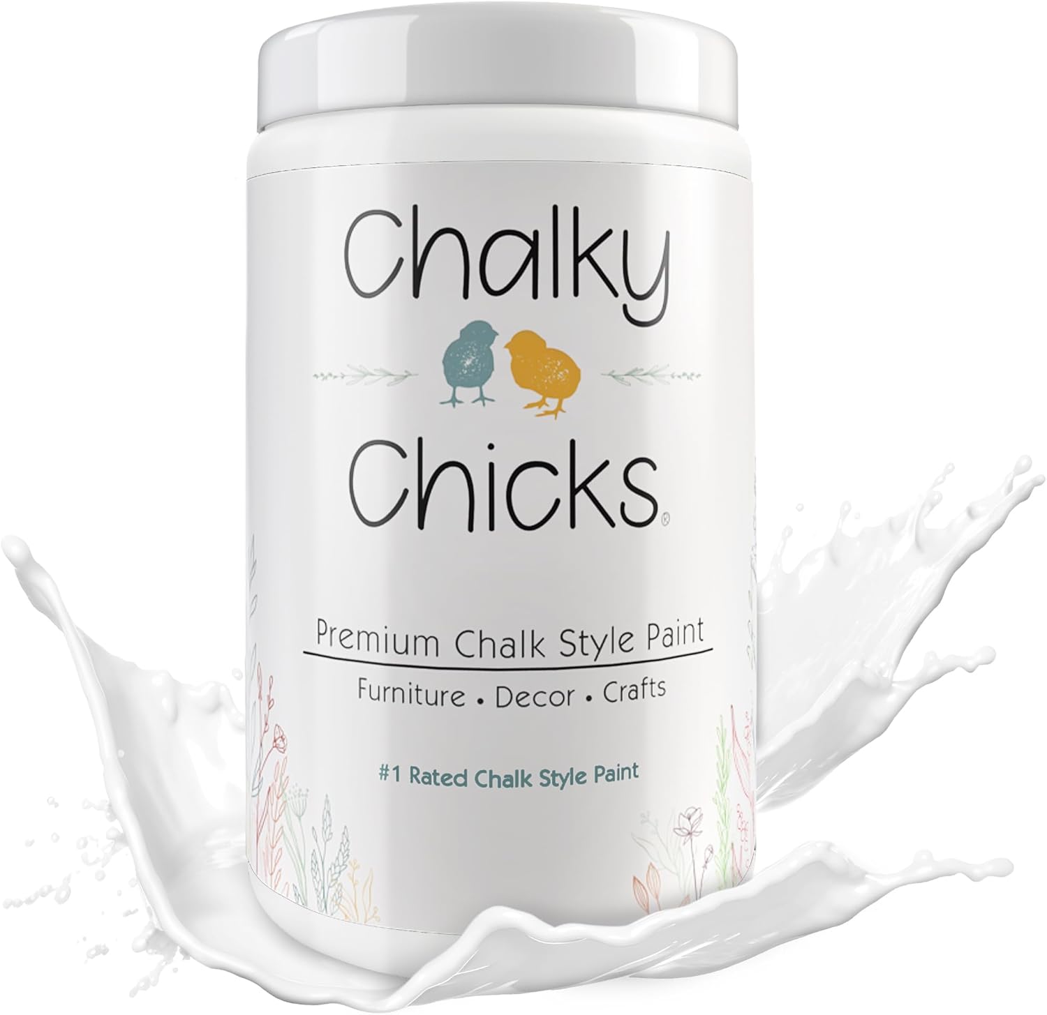 Chalky Chicks All-in-One Chalk Paint for Furniture or Cabinet -32 FlOz-Matte Finish Powdered Snow (Pure White) for Metal, Wood Furniture Paint - No Sanding All-in-One for Home Decor & Crafts, USA Made