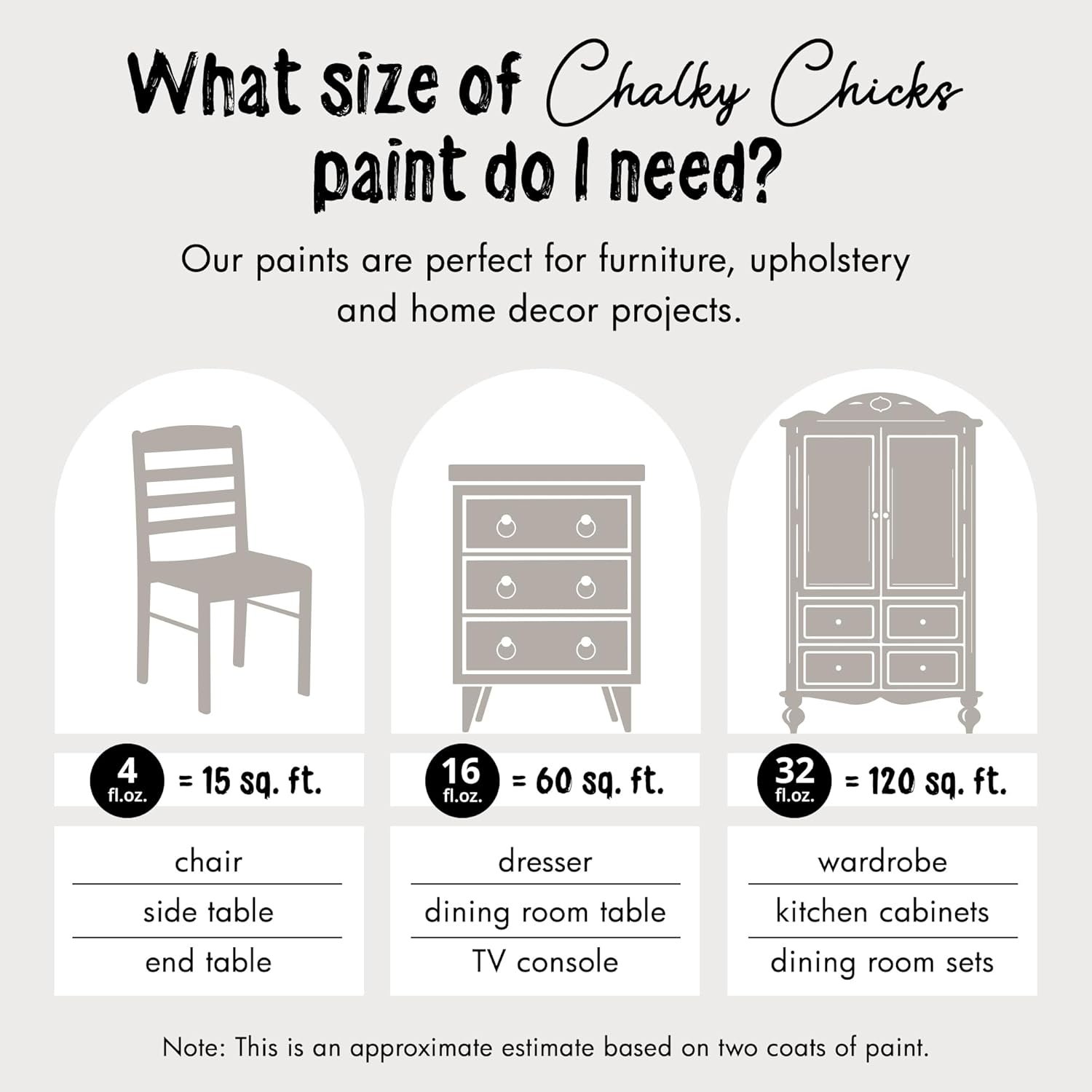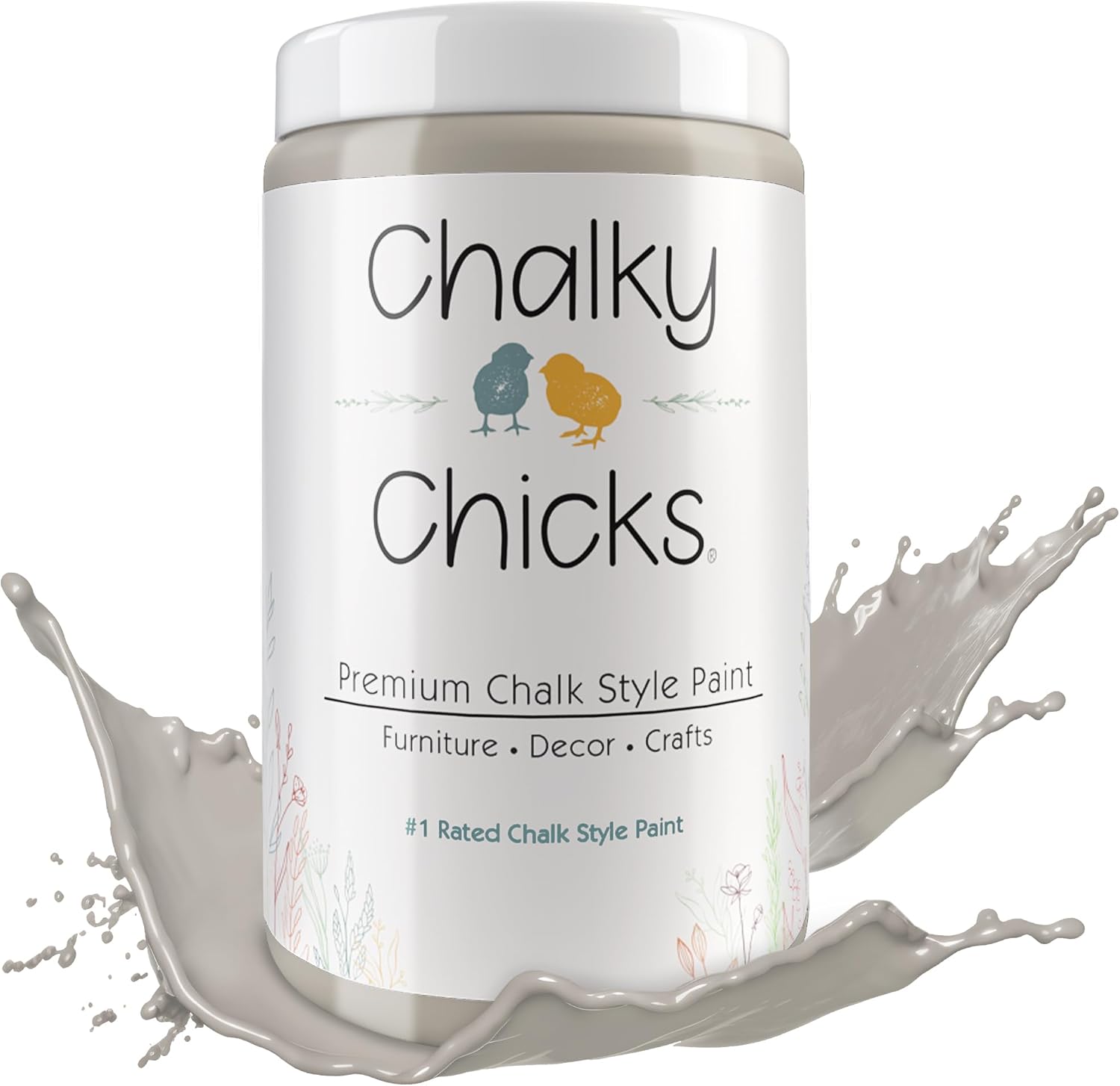 Chalky Chicks All-in-One Chalk Paint for Furniture or Cabinet - 32 Fl Oz - Matte Finish Wolf Gray (Gray/Beige) for Metal, Wood Furniture Paint - No Sanding All-in-One for Home Decor & Crafts, USA Made