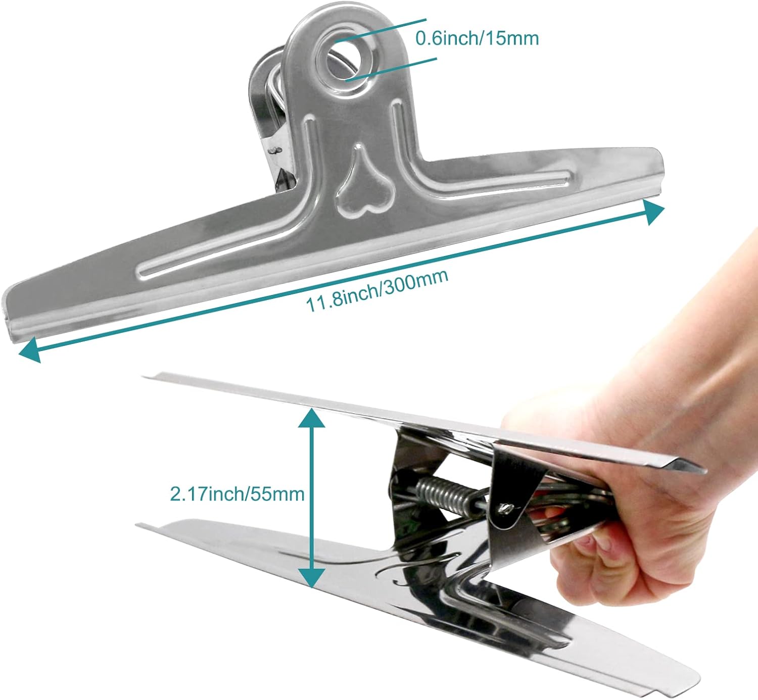 Coideal Extra Large Bulldog Paper Clips, 30cm Jumbo XXL Easel Clips Stainless Steel 2 Pcs Heavy Duty Binder Clamps for Office File (Silver, 11 4/5 Inch)