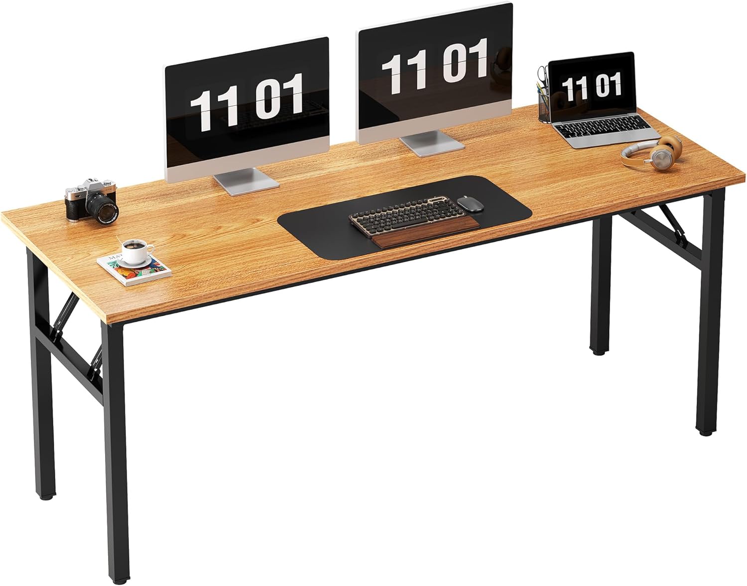 Need Computer Desk Office Desk 62 inches Folding Table with BIFMA Certification Computer Table Workstation No Install Needed, Teak AC5BB-157
