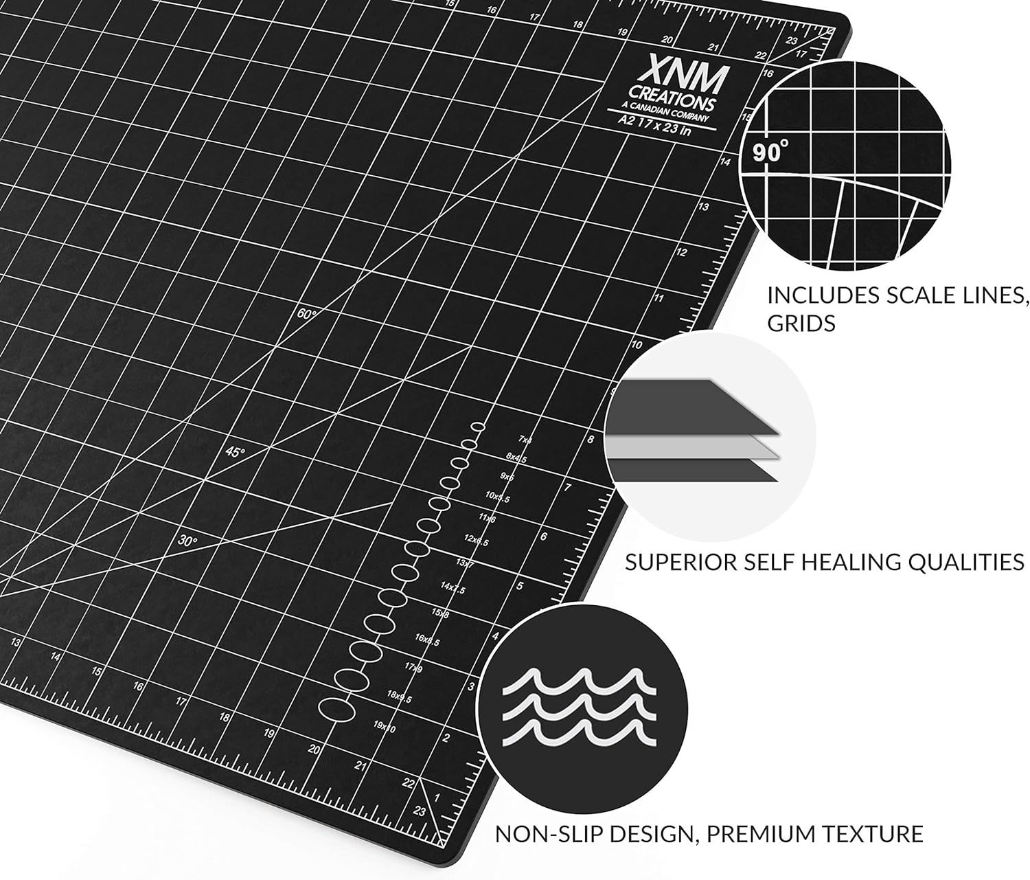 XNM Premium Self Healing Cutting Mat - 18 Inches by 24 inches - A2, 3 Layer Quality PVC Construction - Dual Sided, Imperial and Metric Grid Lines - Perfect for Cutting, Sewing, and Crafts