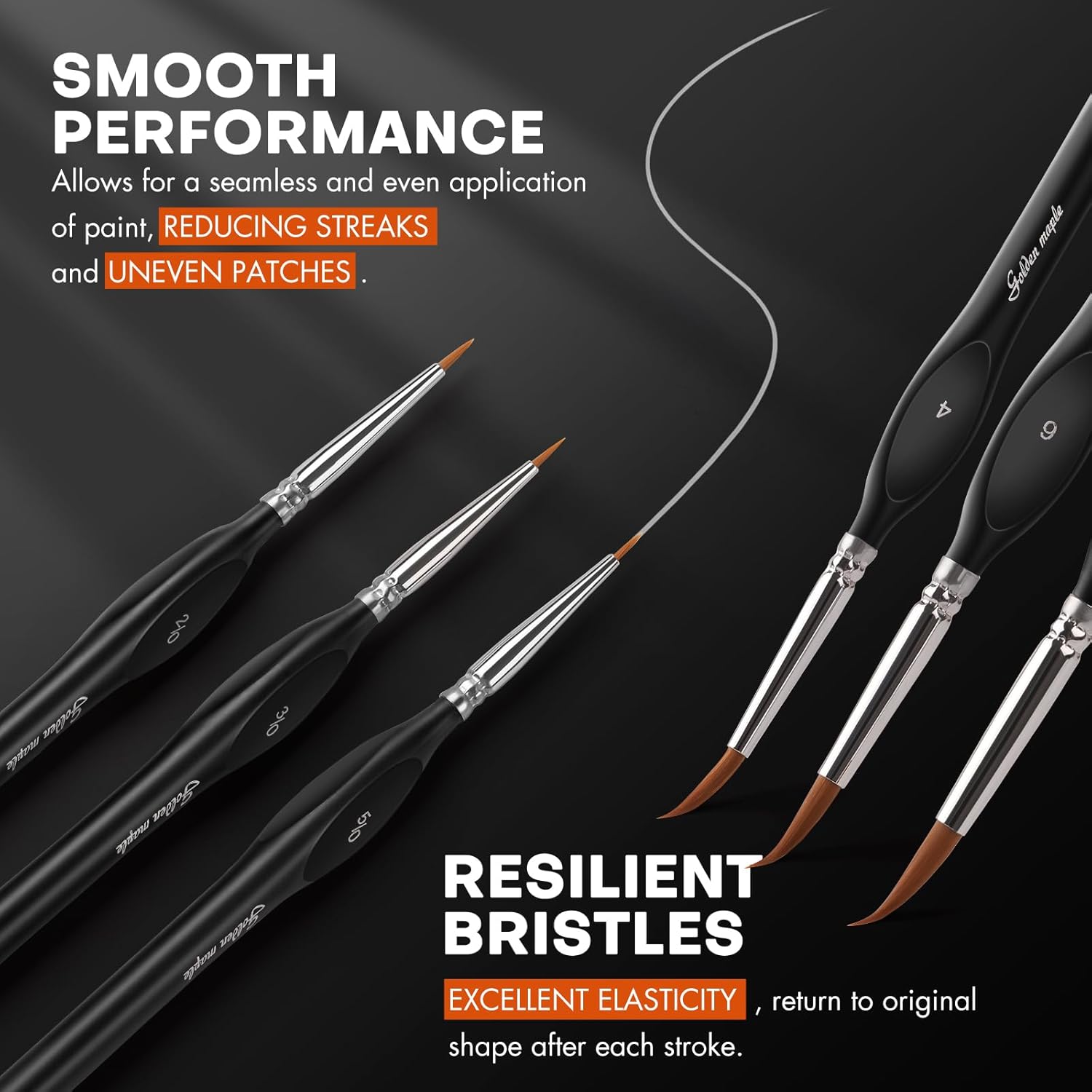 Golden Maple Detail Paint Brushes Set 10pcs Miniature Brushes for Fine Detailing & Art Painting - Acrylic, Watercolor, Oil, Models