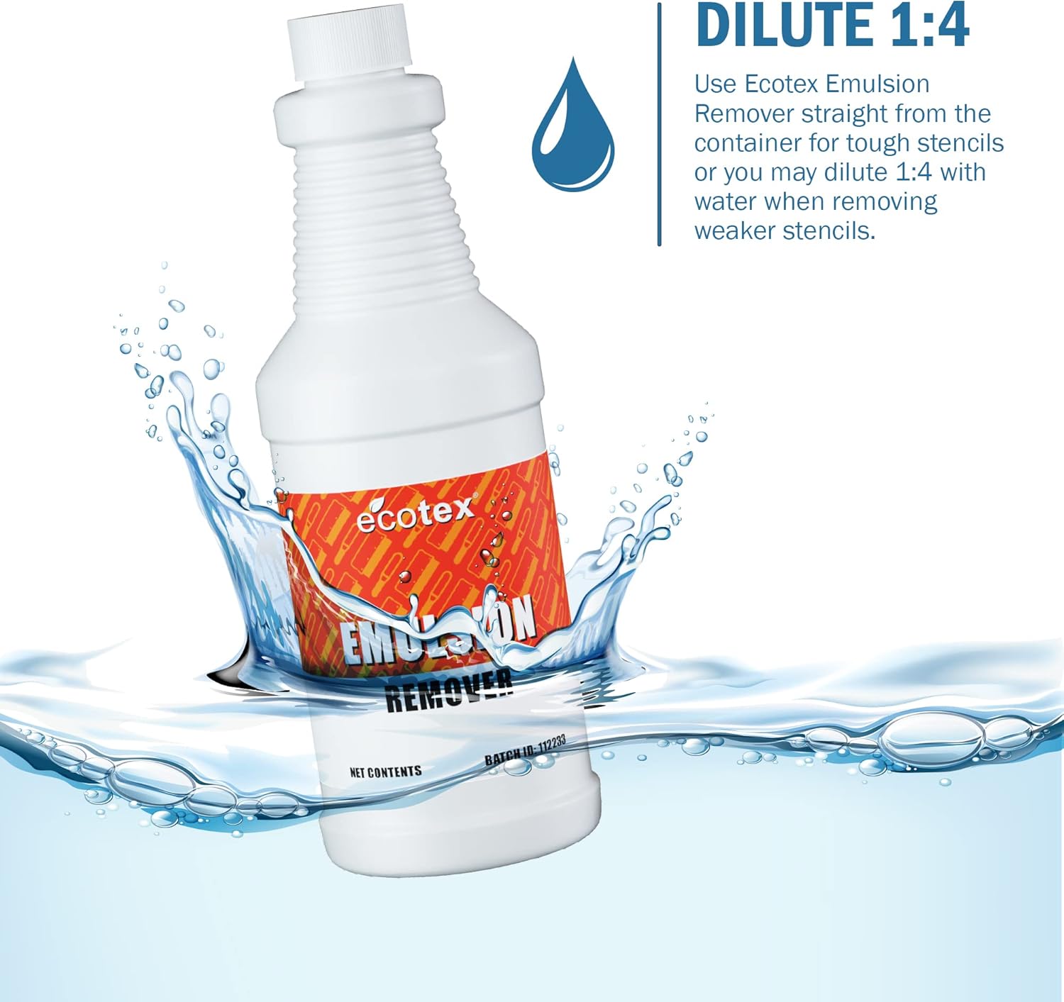 - Safe for All Mesh - No matter your what emulsion came in your screen printing starter kit or how dirty your silkscreen equipment is, Ecotex's Emulsion Remover can clean it without any harsh chemicals.