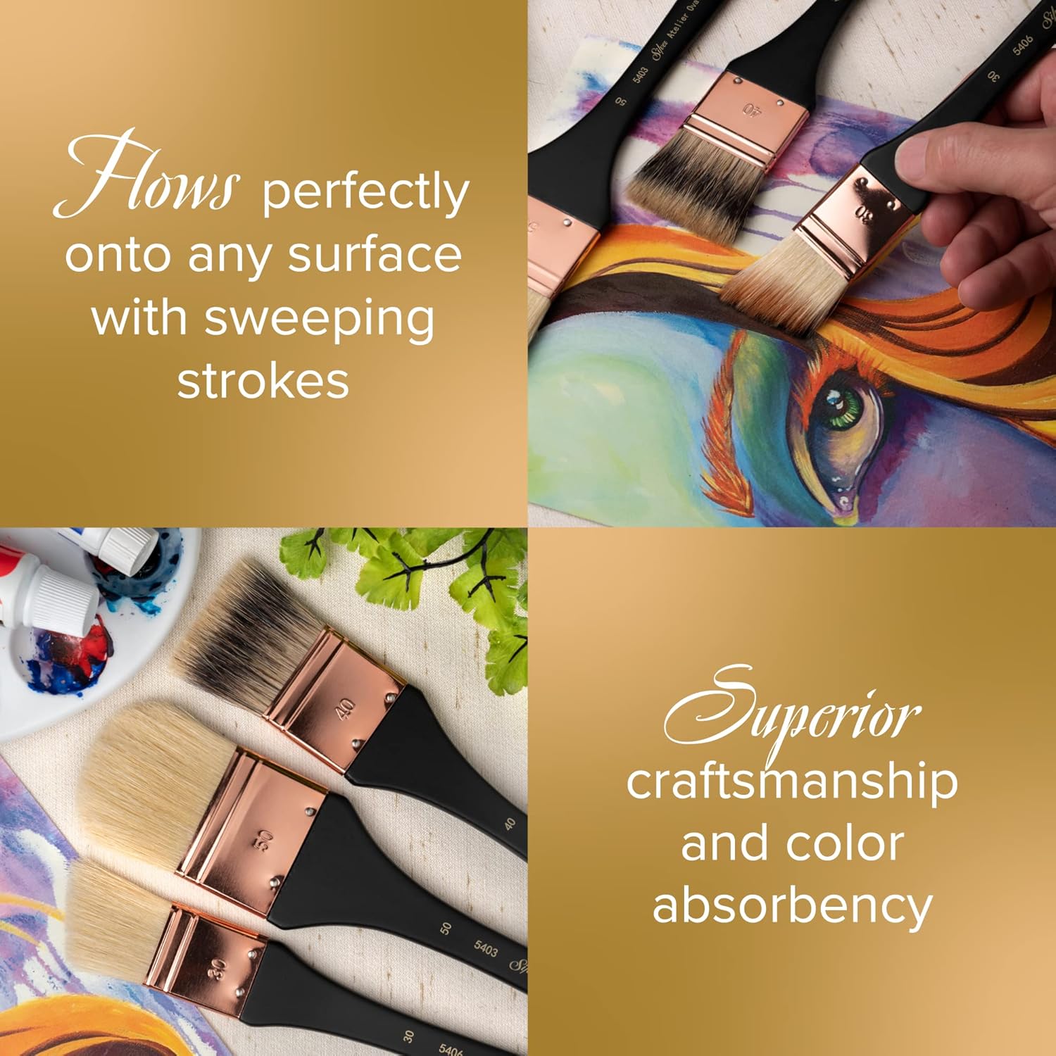 - ACRYLIC & WATERCOLOR PAINT: Our Atelier paintbrushes are best paired with oil, acrylic, or watercolor paints. Colors flow beautifully onto silk or paper in sweeping strokes that add detailed blending marks to your painting.