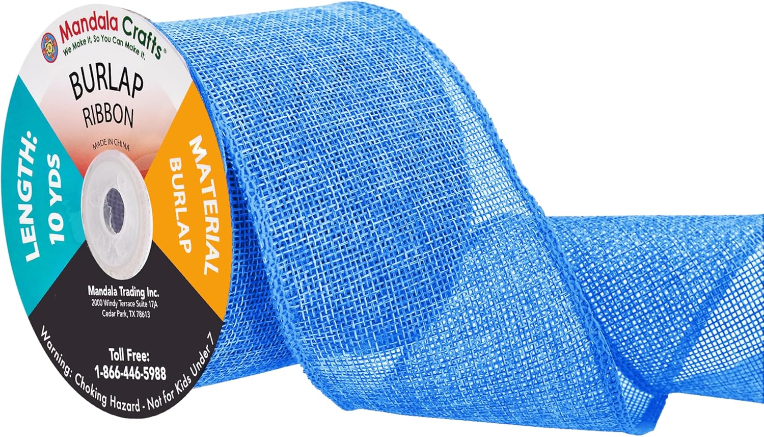 - Natural Burlap Ribbon: Compared to other jute burlap ribbons, our rustic burlaps ribbon with a fray & shed-resistant hemmed edges is made from thicker sky blue burlap fabric. The indoor & outdoor colored burlap crafts ribbon is colorfast and will not bleed.
