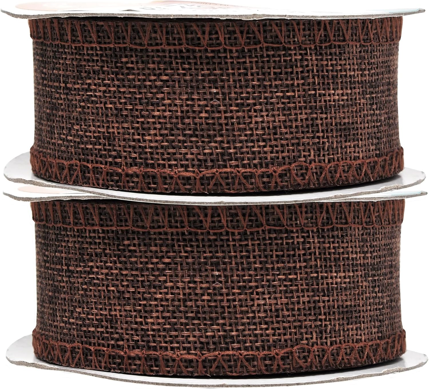 - Bulk Burlap Ribbon Brown Linen Ribbon: Each continuous 1.5 in colored burlap roll is 10 yard long. With two brown burlap rolls, total 20 yards long, the burlap ribbon bulk pack is handy to decorate trees and mason jars or hang pictures.