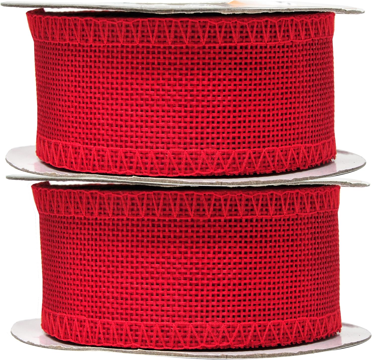 - Bulk Burlap Ribbon Red Linen Ribbon: Each continuous 1.5 in colored burlap roll is 10 yard long. With two red burlap rolls, total 20 yards long, the burlap ribbon bulk pack is handy to decorate trees and mason jars or hang pictures.