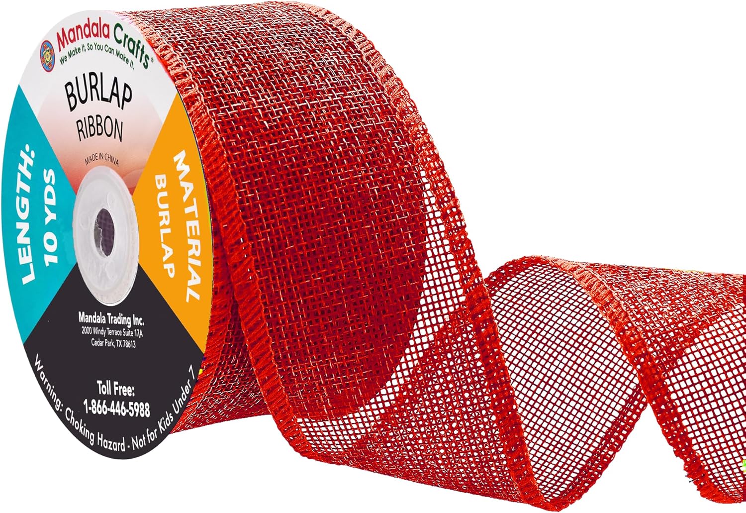 - Bulk Burlap Ribbon Red Linen Ribbon: Each continuous 2 in colored burlap roll is 10 yard long. With two red burlap rolls, total 20 yards long, the burlap ribbon bulk pack is handy to decorate trees and mason jars or hang pictures.