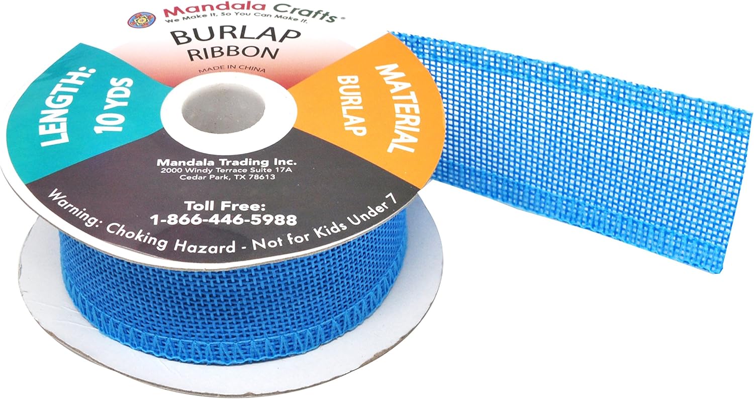 - Bulk Burlap Ribbon Sky Blue Linen Ribbon: Each continuous 1.5 in colored burlap roll is 10 yard long. With two sky blue burlap rolls, total 20 yards long, the burlap ribbon bulk pack is handy to decorate trees and mason jars or hang pictures.