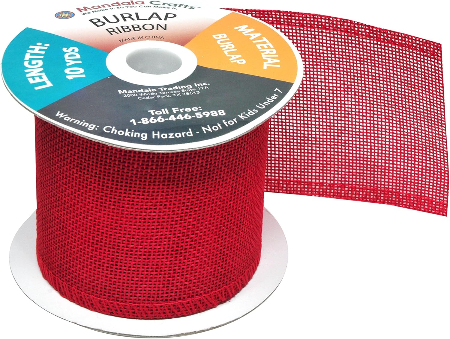 Mandala Crafts Red Burlap Ribbon 3 Inches Wide Jute Ribbons for Crafts - 20 Yds Roll Rustic Burlap Wrap Trim Ribbons for Wreaths Bows Wedding Party Decoration