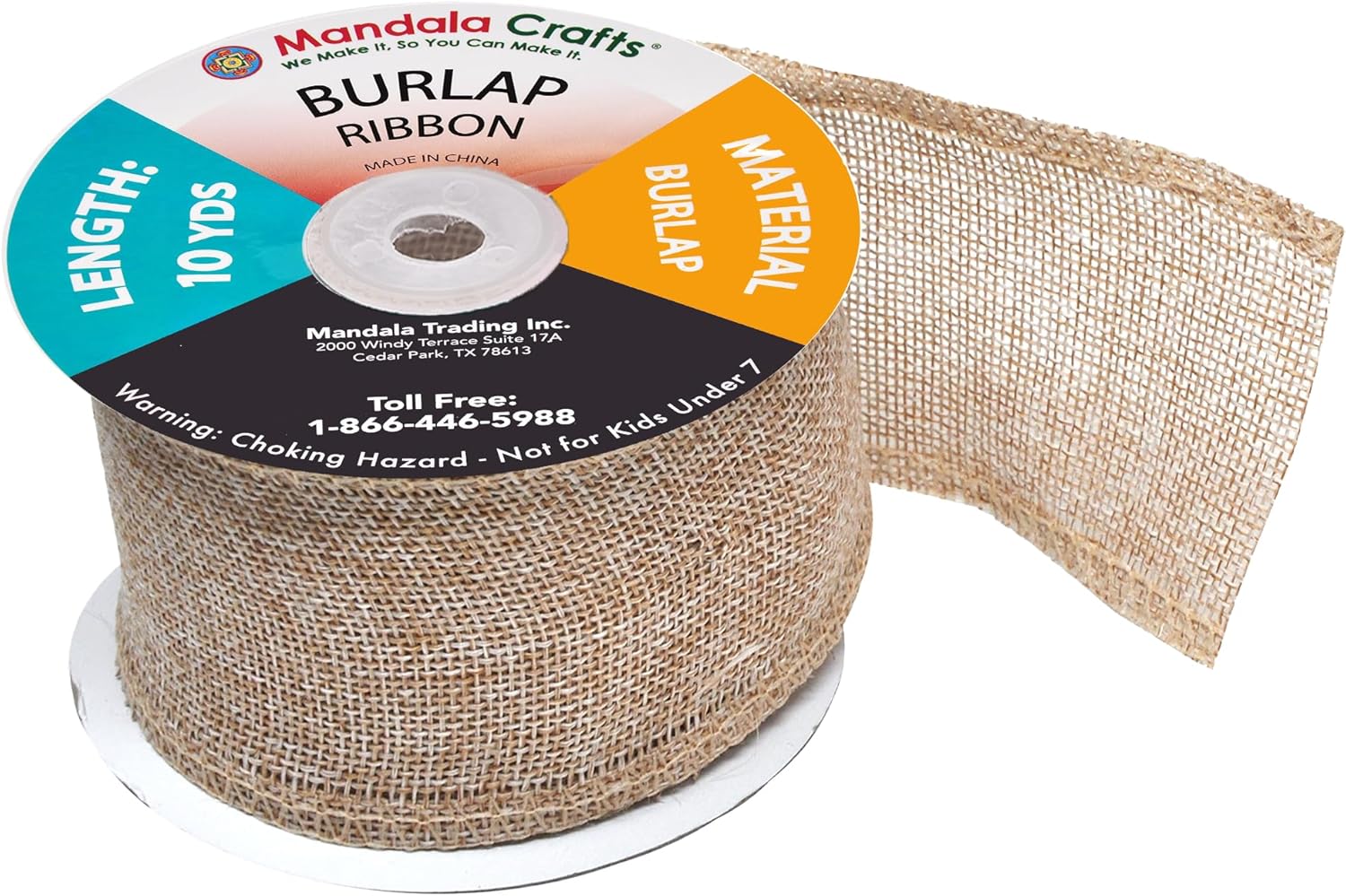 Mandala Crafts Natural Burlap Ribbon 2.5 Inches Wide Jute Ribbons for Crafts - 20 Yds Roll Rustic Burlap Wrap Trim Ribbons for Wreaths Bows Wedding Party Decoration
