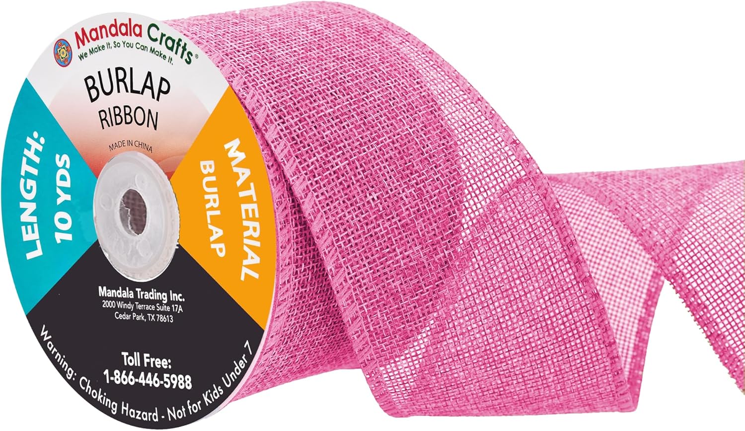 - Bulk Burlap Ribbon Pink Linen Ribbon: Each continuous 2.5 in colored burlap roll is 10 yard long. With two pink burlap rolls, total 20 yards long, the burlap ribbon bulk pack is handy to decorate trees and mason jars or hang pictures.