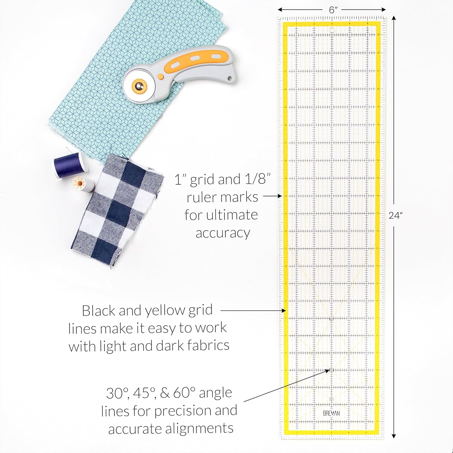 Breman Precision Quilting Rulers – 6x24 Inch Clear Acrylic Rulers for Quilting and Sewing – Laser-Cut Edge, Easy-Read Grid Lines, Angled Markers – Fabric Guide for Left & Right-Handed Users