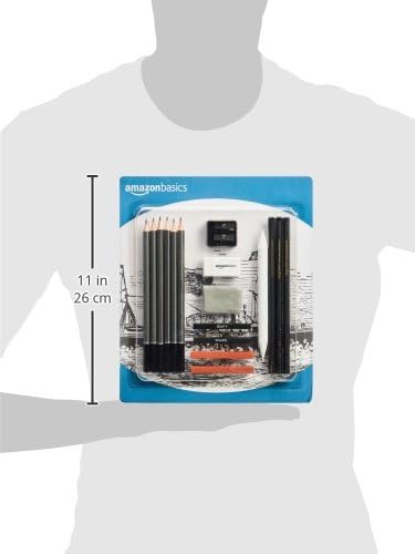 Amazon Basics Sketching and Drawing Art Pencil Kit, Artist Supplies with Pencils, Erasers, Sharpener, Charcoal, Black, White, 17 Piece Set