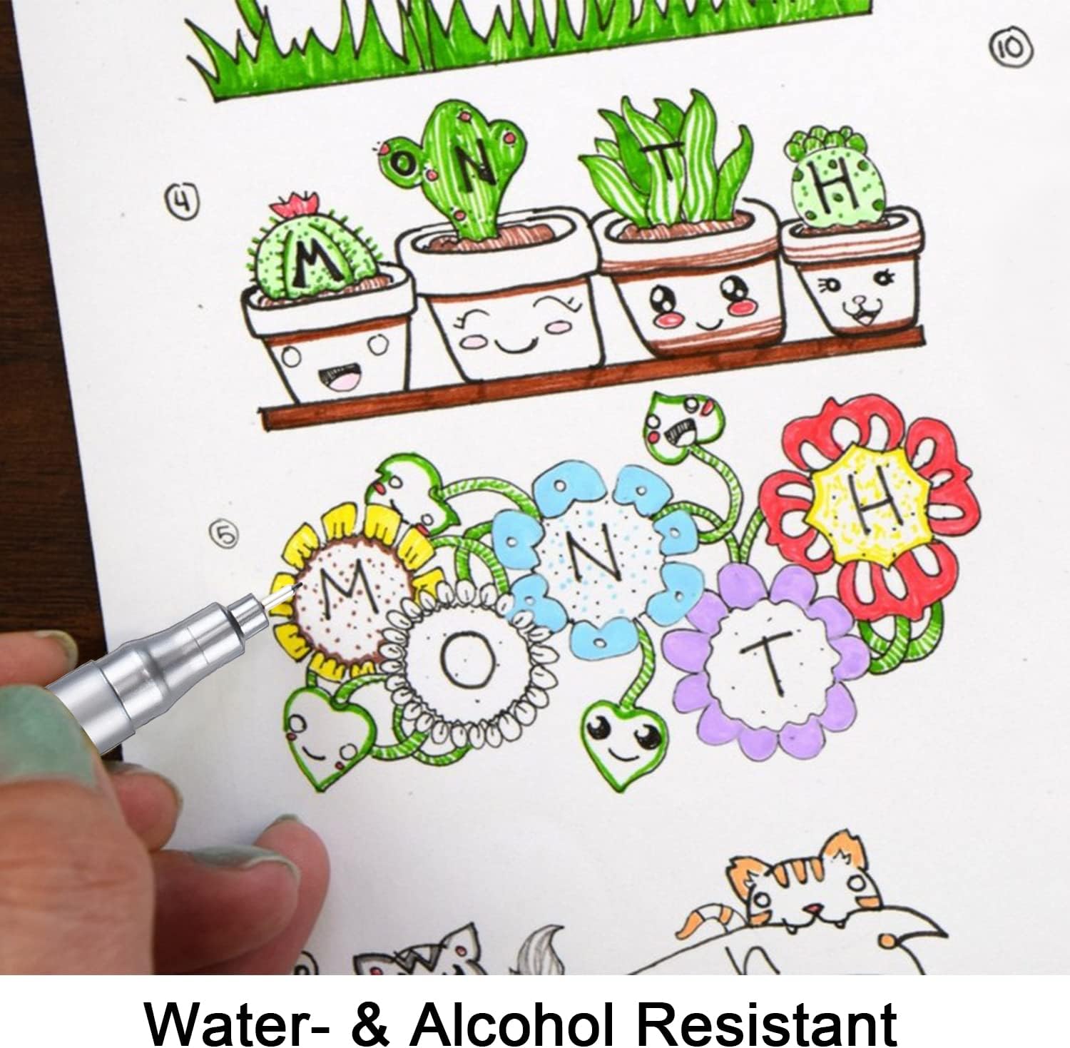 - Water-Resistant Black Pigment Ink - Non-refillable fine point black ink that is water and alcohol resistant. The ink dries quickly, and it doesn't bleed through bible journal pages. It is of archival quality, fade-resistant, acid-free, non-toxic, and odorless