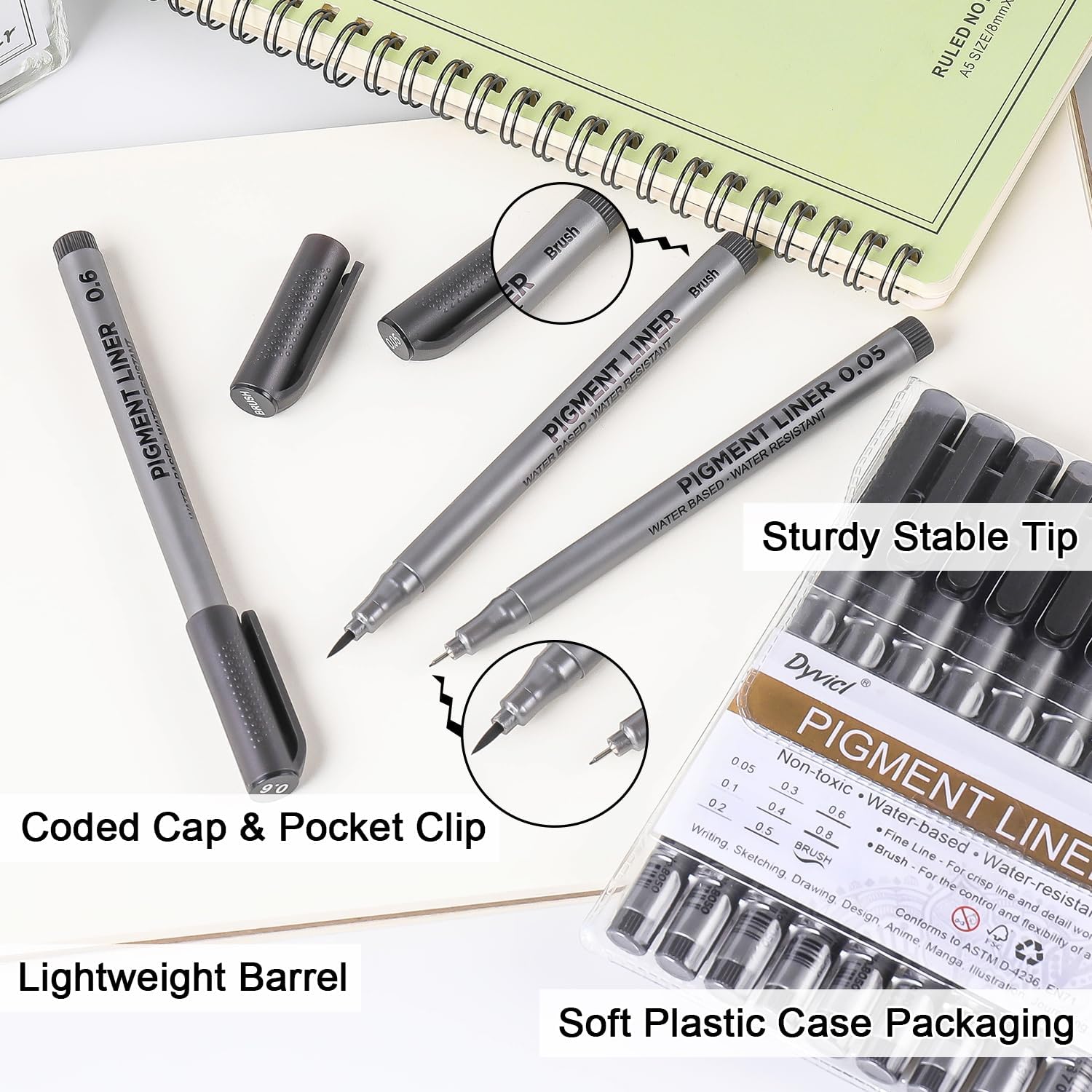 Dyvicl Micro-Pen Fineliner Pens, Black Pigment Liner Multiliner Archival Ink Micro Fine Point Pens for Drawing, Sketching, Journaling, Doodling, 9 Pack