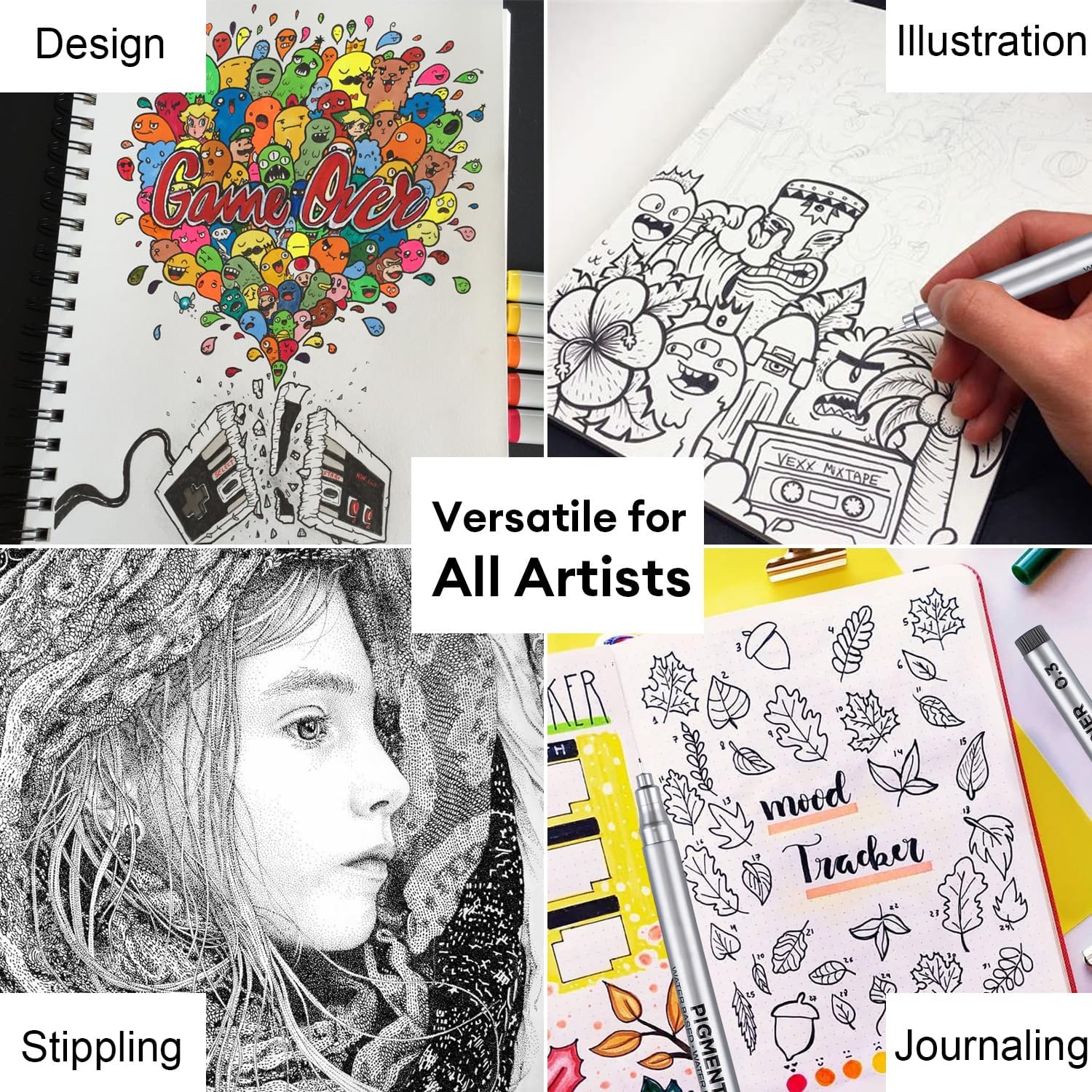 - Skip-Free Writing - You can use the artist pens on tracing paper, vellum, and many other paper types as the ink flows smoothly without skipping, smearing, or leaking. You can smoothly glide your expression of art that is consistent and free-flowing, with clean outlines and detailed fine line drawings
