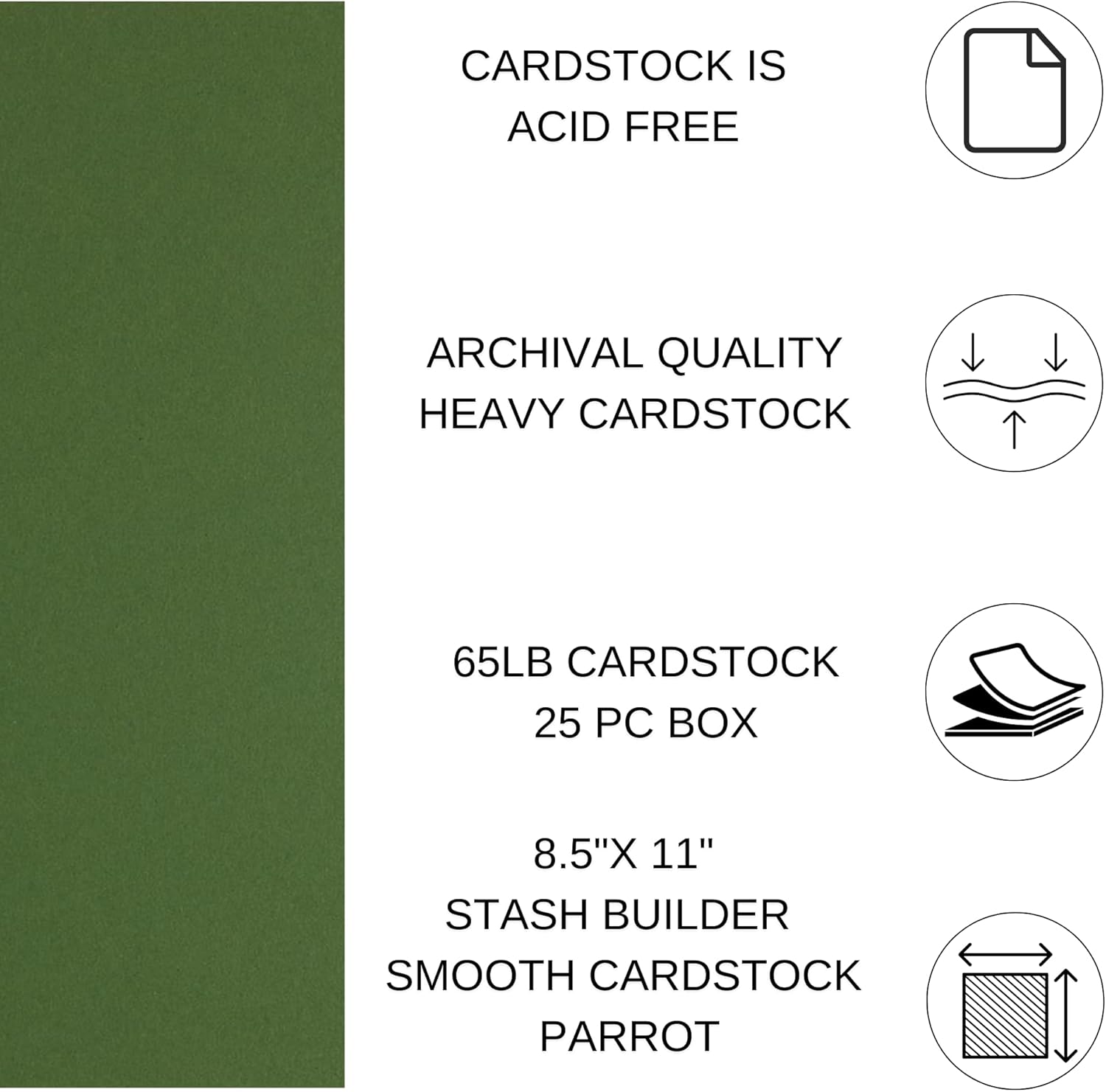 PA Paper Accents Stash Builder Cardstock 8.5" x 11" BParrot, 65lb colored cardstock paper for card making, scrapbooking, printing, quilling and crafts, 25 piece pack