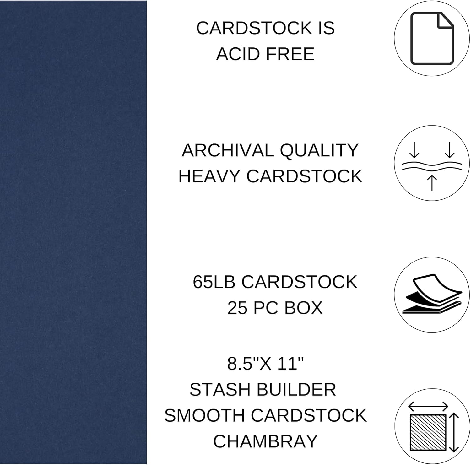 PA Paper Accents Stash Builder Cardstock 8.5" x 11" Chambray, 65lb Colored cardstock Paper for Card Making, Scrapbooking, Printing, Quilling and Crafts, 25 Piece Pack