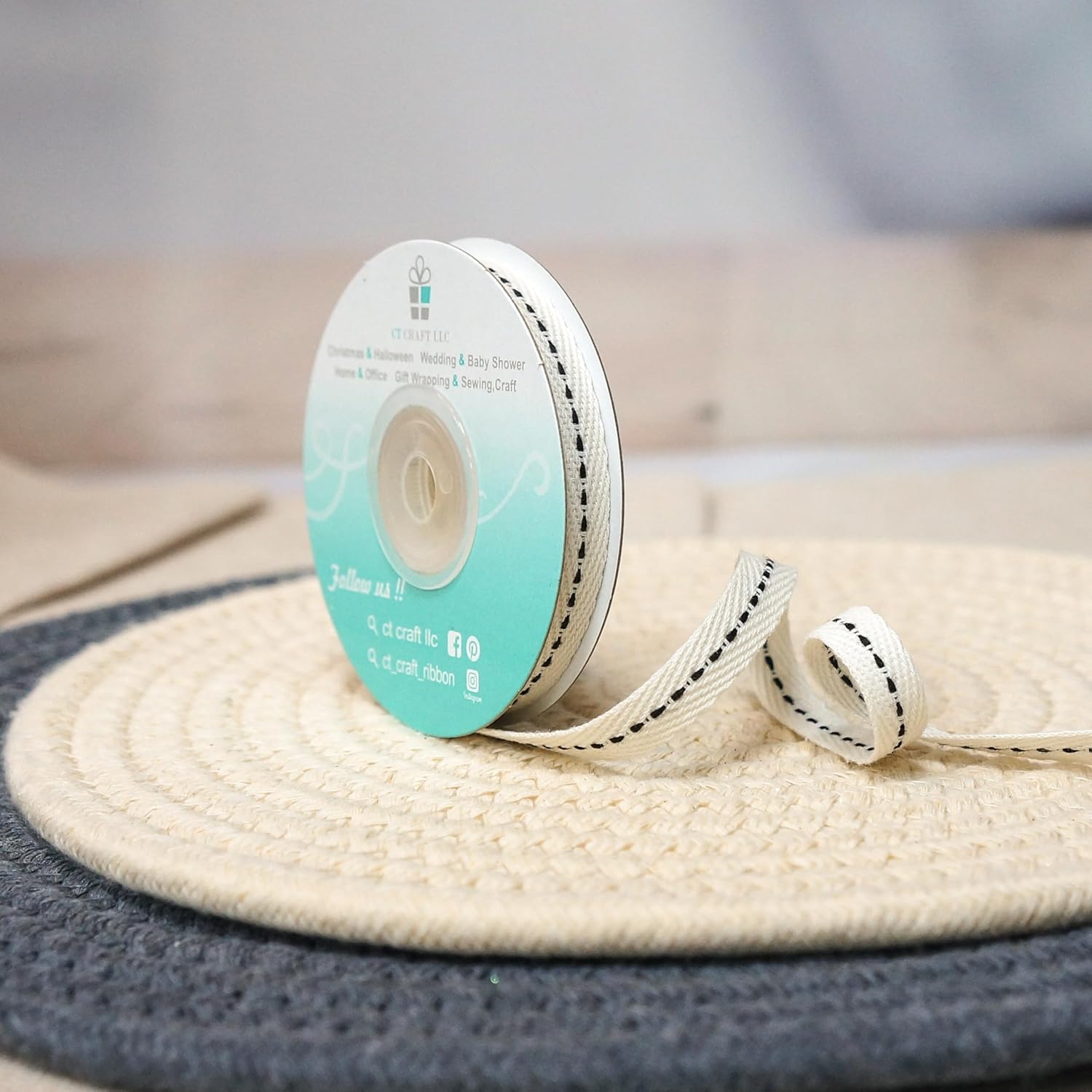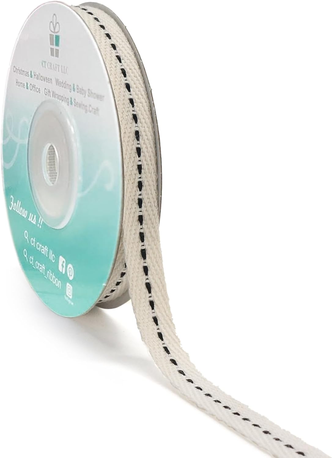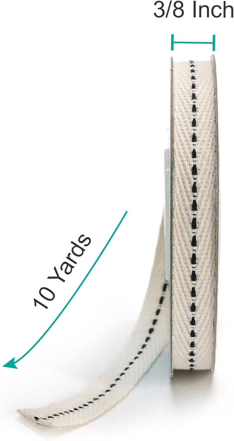 - EASY TO USE - The 10-yard long Ivory Cotton Black Stitched Ribbon 3/8" is enough for all the decorating and accenting your DIY Crafts. The Ivory Cotton Black Stitched Ribbon 3/8" is easy to use and won’t tangle. It can be tied or glued on gift packages and DIY craft projects such as car and chair bow, wreath, flower bouquet.