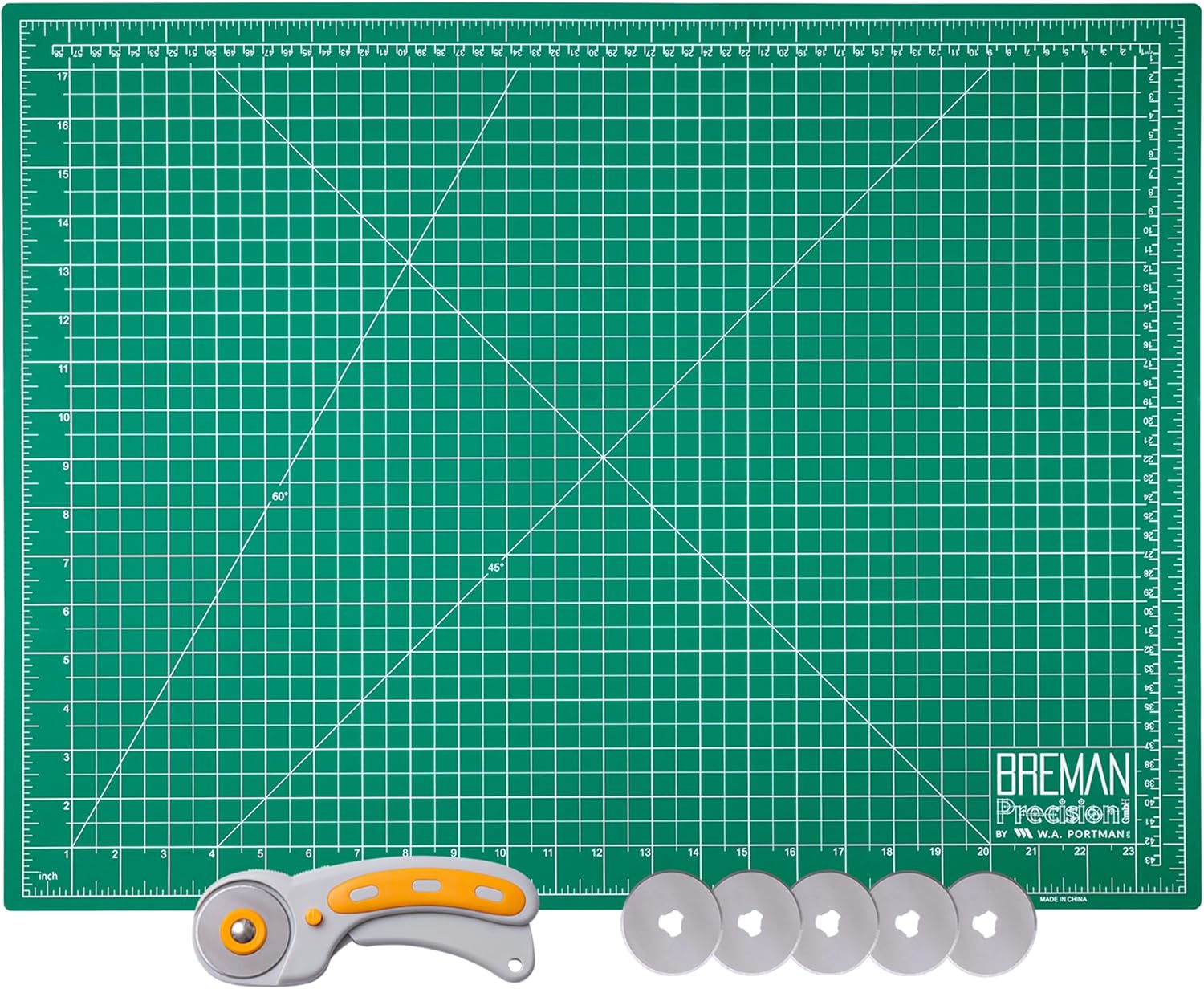 WA Portman Self Healing Cutting Mat & Rotary Cutter for Fabric Set – 18x24 Sewing Cutting Mats for Crafts with 45mm Fabric Cutter Wheel & 5 Rotary Blades – Quilting & Sewing Supplies Kit