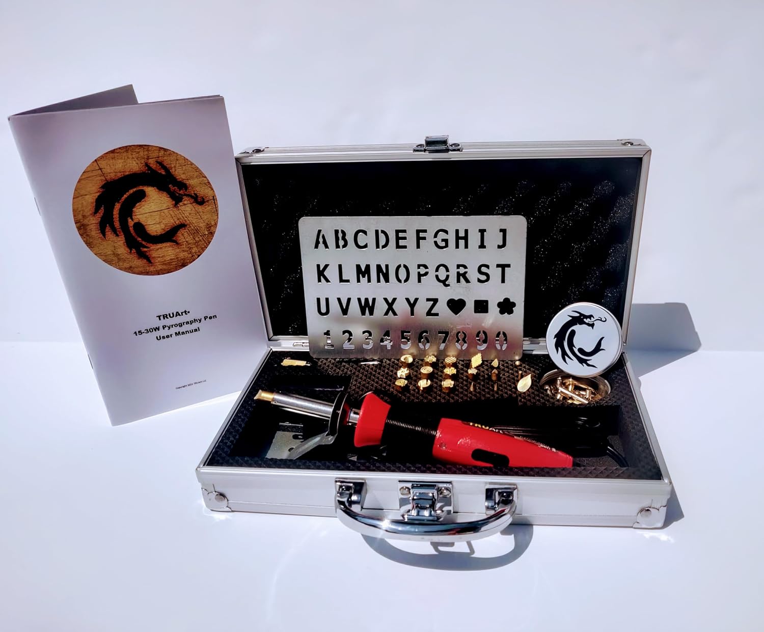TRUArt Wood and Leather Pyrography Pen Set - Best Woodburning and Leather Crafts Burner Tool Kit - 35 Different Tips - Dual Power Mode - 30W and 15W, Gourd (Aluminum Case)