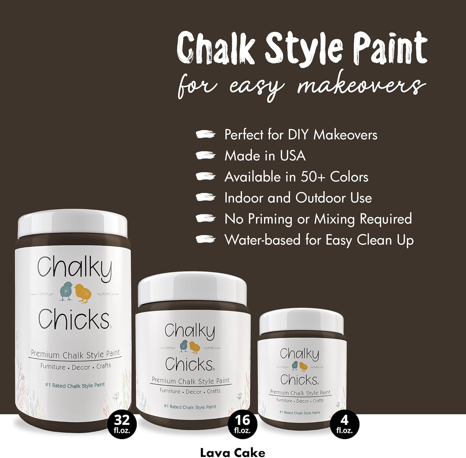 Chalky Chicks All-in-One Chalk Paint for Furniture or Cabinet - 16 Fl Oz - Matte Finish Lava Cake (Dark Brown) for Metal, Wood Furniture Paint - No Sanding All-in-One for Home Decor & Crafts, USA Made