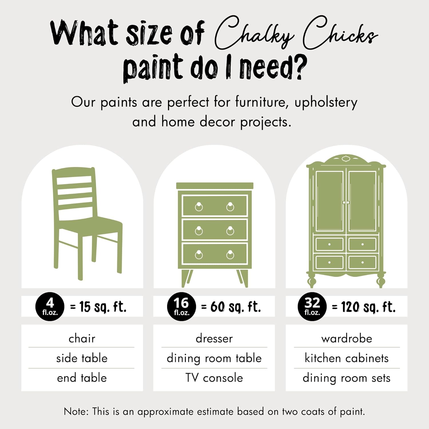 - TRANSFORM FURNITURE AND HOME DECOR WITH EASE: Chalky Chicks will save you time, money, and hassle. No sanding, priming, or multiple coats needed—just start painting your furniture with our cabinet paint no sanding or priming. Our paint is suitable for wood, metal, concrete, textiles, laminate, and more. Whether you prefer navy blue chalk paint, light blue paint, or green chalk paint, our chalk paint for furniture transforms any space with ease, making it ideal for DIY projects & craft painting.