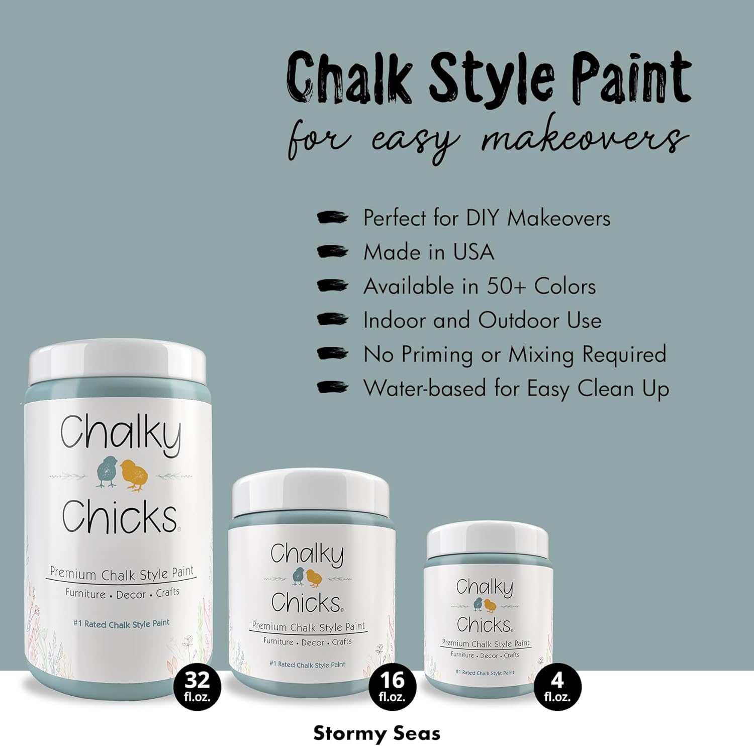 Chalky Chicks All-in-One Chalk Paint for Furniture or Cabinet - 16Fl Oz- Matte Finish Stormy Seas (Light Blue) for Metal, Wood Furniture Paint - No Sanding All-in-One for Home Decor & Crafts, USA Made