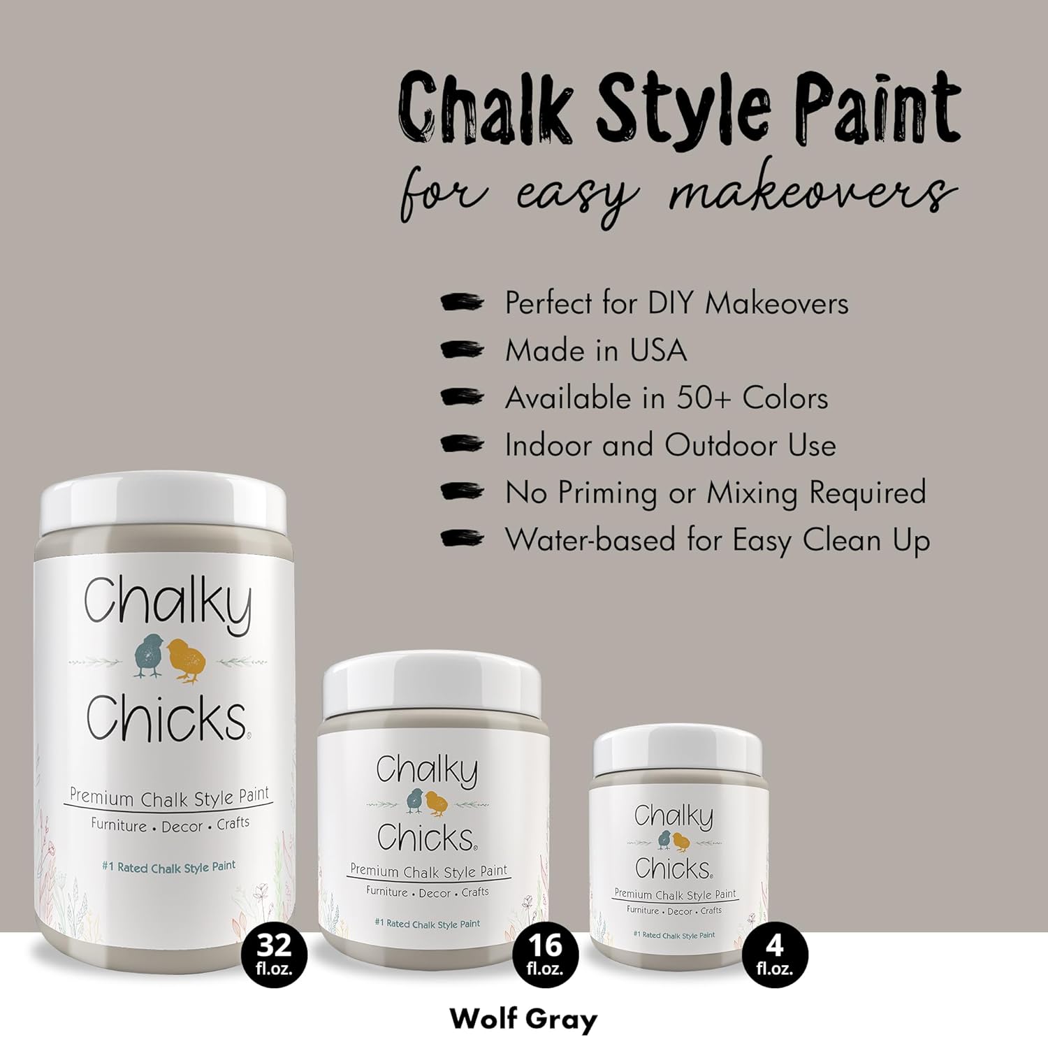 Chalky Chicks All-in-One Chalk Paint for Furniture or Cabinet - 16 Fl Oz - Matte Finish Wolf Gray (Gray/Beige) for Metal, Wood Furniture Paint - No Sanding All-in-One for Home Decor & Crafts, USA Made