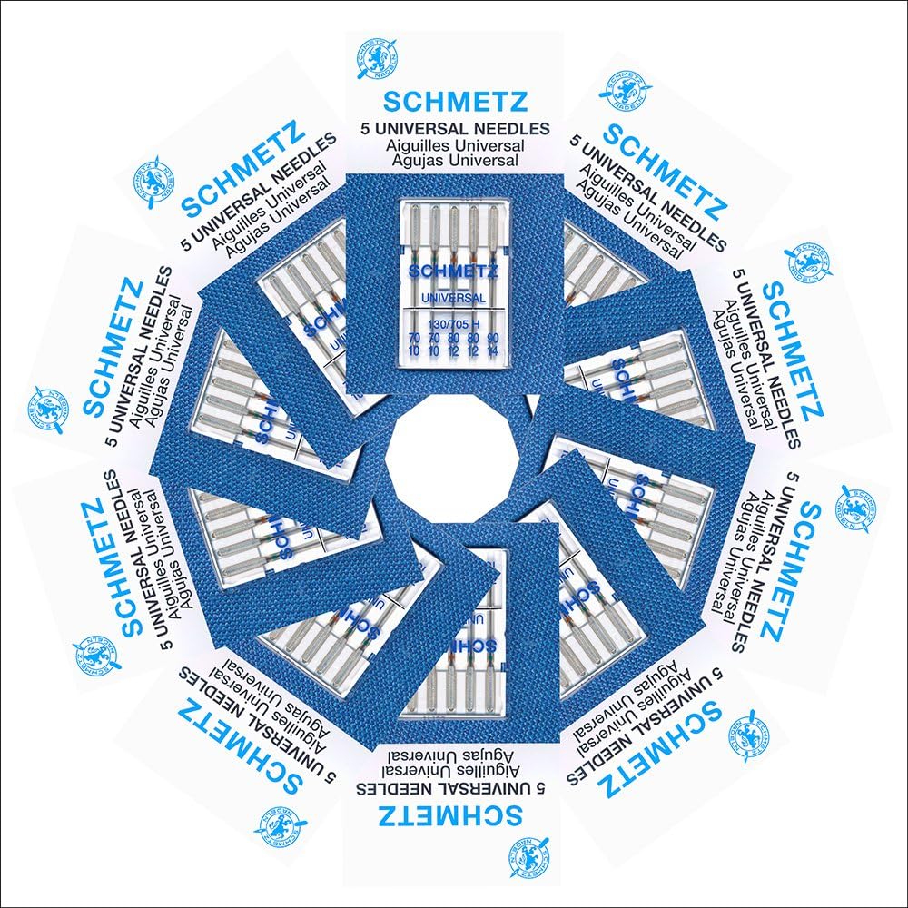 50 Schmetz Universal Sewing Machine Needles - Assorted Sizes - Box of 10 Cards