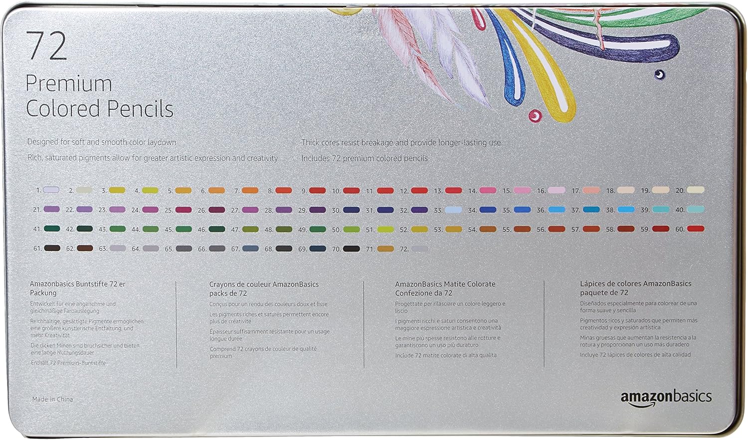 Amazon Basics Colored Pencils for Coloring and Drawing, Premium, Soft Core, Back to School Supplies, 72 Count (Pack of 1), Multicolor