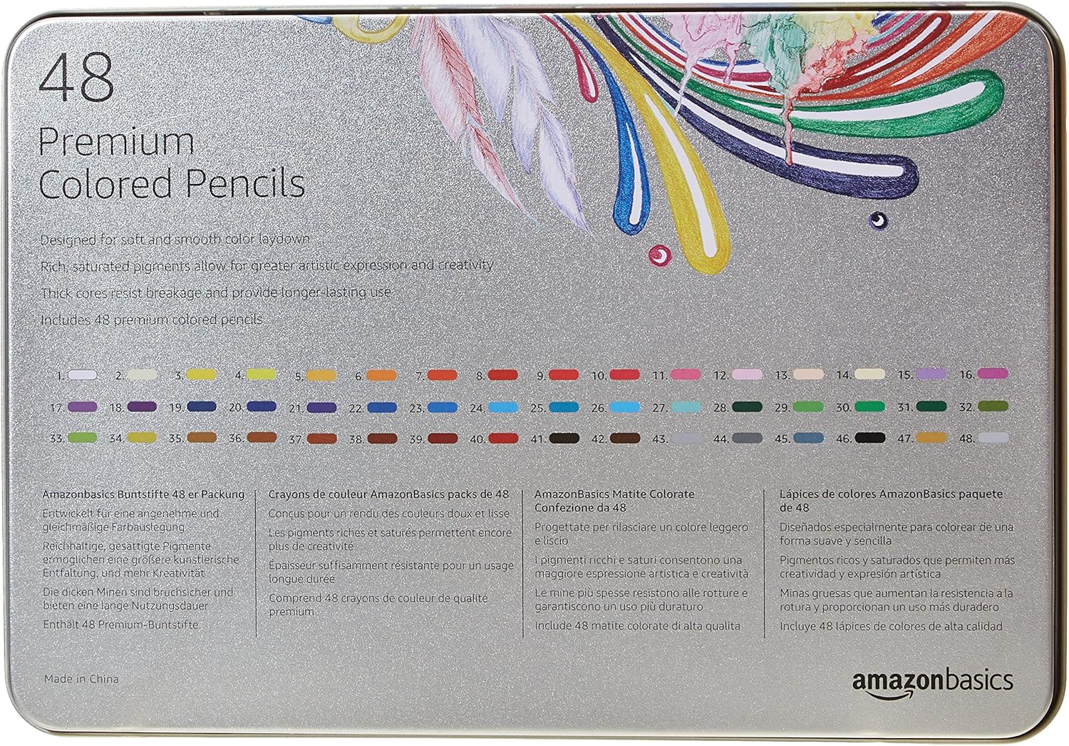 Amazon Basics Colored Pencils for Coloring and Drawing, Premium, Soft Core, Back to School Supplies, 48 Count (Pack of 1), Multicolor